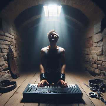 Male vocals, 80s synth-pop, dark synth, upbeat, celebratory, Strong synth pads, catchy melody, with powerful basslines, Anthemic, joyful vocals, triumphant mood, with vintage 80s production