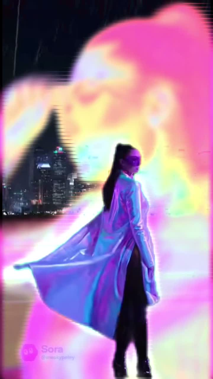 Synthwave with 80’s hard rock featuring high-gain electric guitar leads and driving electronic percussion, A gated reverb snare hits on the backbeat while a sixteenth-note synth bassline provides constant motion, Analog-style polyphonic synthesizers play sustained chords and rhythmic staccato patterns, The lead vocals are powerhouse female, processed with light saturation and delay, sung on the beat, Distorted electric guitar performs melodic fills and power chords, Tempo is 155 BPM in the key of E minor