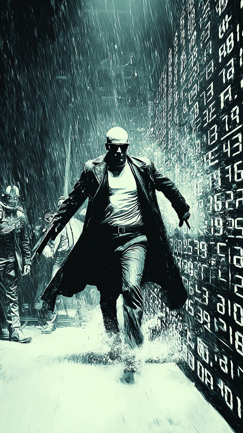 A hypnotic melodic post-punk rock song at 135 BPM in A major, built on clean electric guitars driving a pulsing 8th note rhythm and a melodic walking bassline, Tight, dry drums deliver a motorik groove, reinforced by a subtle organ pad, Deep hoarse spoken male vocals float over the urban, cinematic texture, The arrangement remains raw and minimal yet groovy throughout, with subtle saxophone swells or guitar feedback creating a moody outro