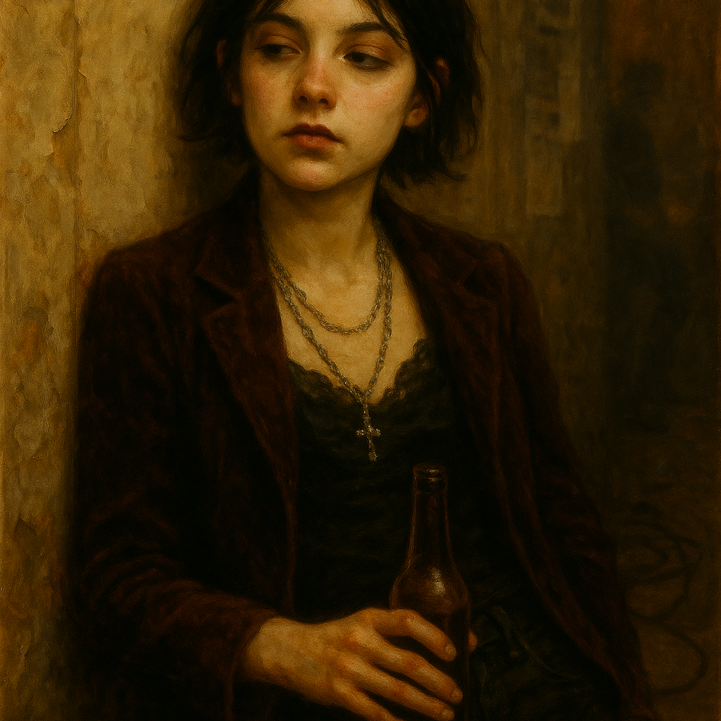Lo-fi goth-rock and garage post-punk with a raw, cheap-studio sound, Dry, close-mic’d female vocals with strong Parisian French accent; soft, slightly raspy tone with natural imperfections, breath breaks, and light pitch drift, Verses are quiet and hesitant; choruses louder and distorted, with over-articulated French vowels and emotional cracks, Guitars are fuzzy and thin with rough chord changes and small timing slips; bass is warm and slightly overdriven with simple repetitive grooves; drums are boxy and live with ringing snare and cymbal crash that clips the mix, Production feels like a narrow-room rehearsal recording—tape hiss, distortion, mic bleed, minimal stereo image, Mood is dark, youthful, romantic, and melancholic, capturing the raw energy of a local band still learning its power, ‑polished pop, ‑commercial indie rock, ‑clean studio production, ‑synth pop, ‑electronic beats, ‑modern radio rock, ‑acoustic singer-songwriter, ‑ambient textures, ‑orchestral elements, ‑trap or hip-hop drums, ‑autotune or vocal tuning, ‑wide stereo imaging, ‑reverb-heavy dream pop