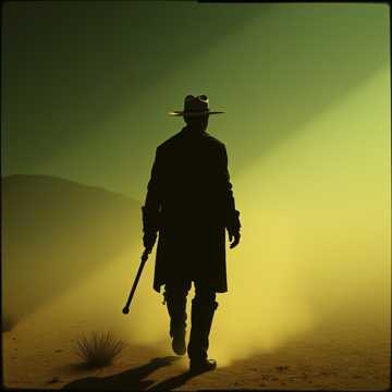 quirky terrifying spaghetti western, strong bass, electric guitar, whistle, violin, trumpet