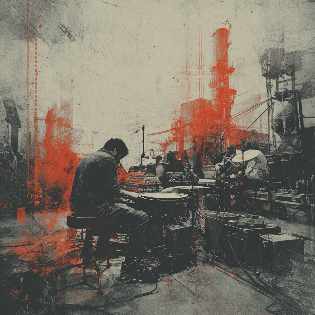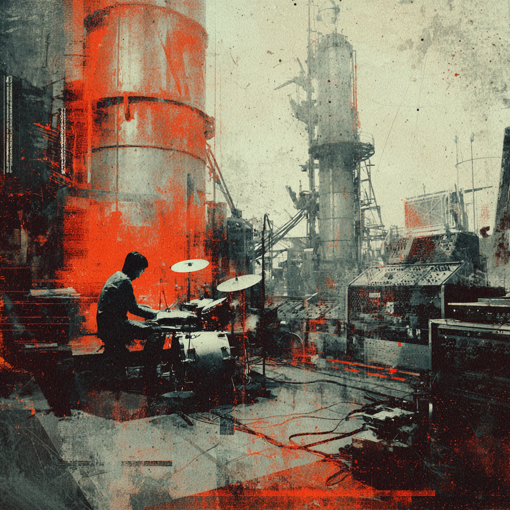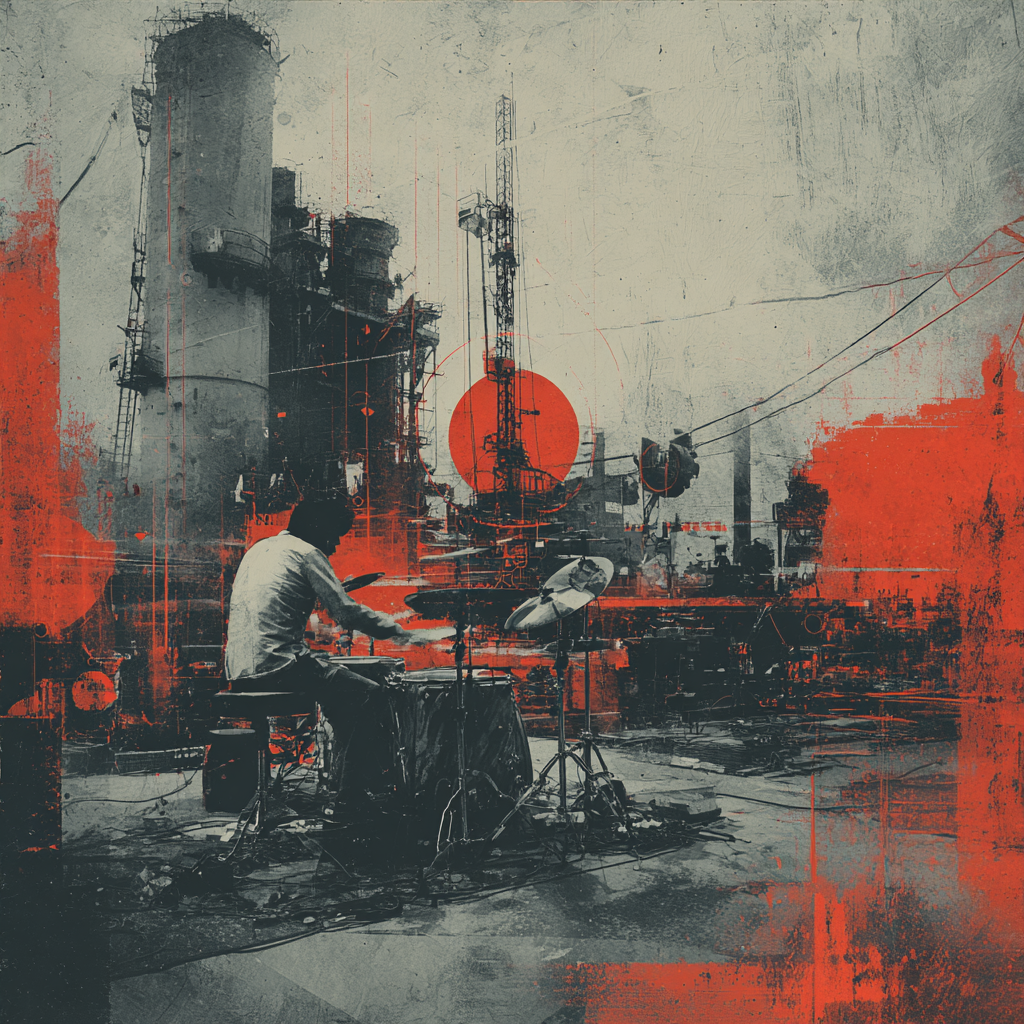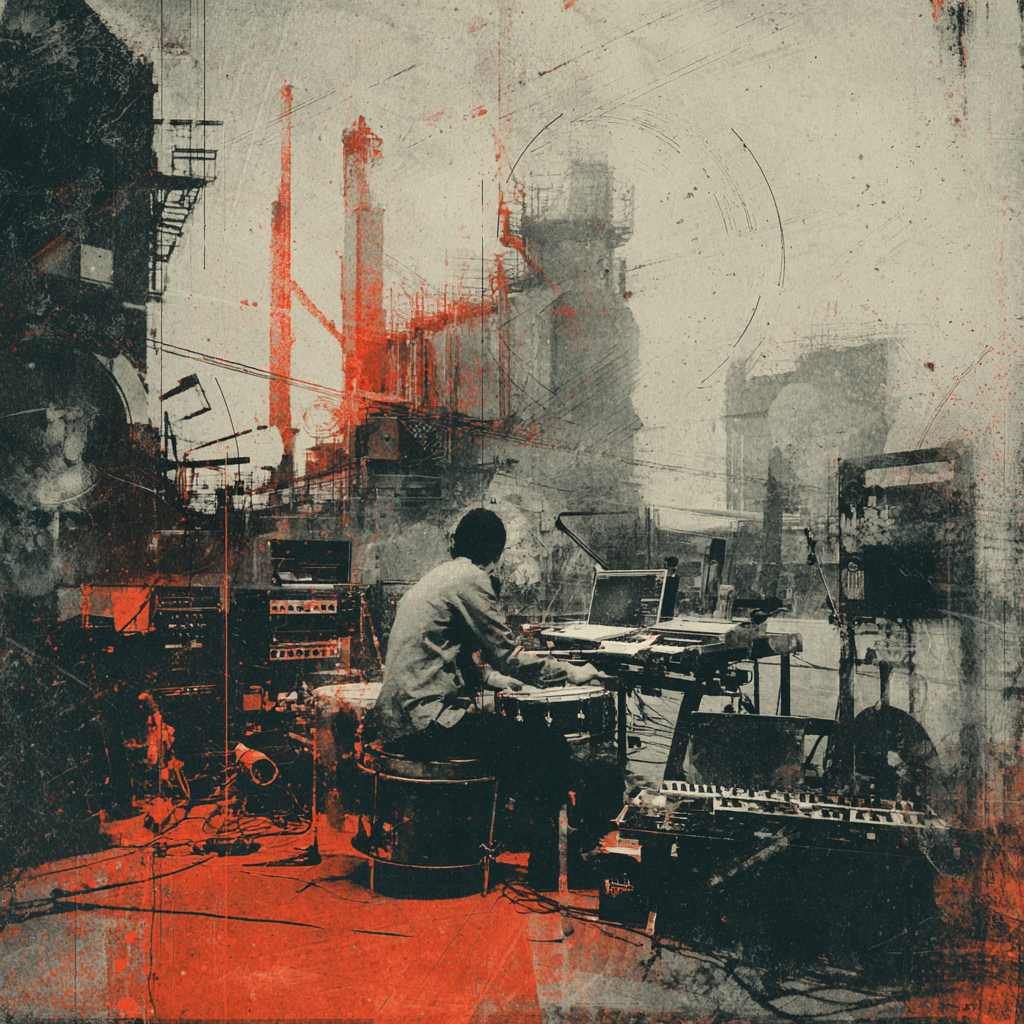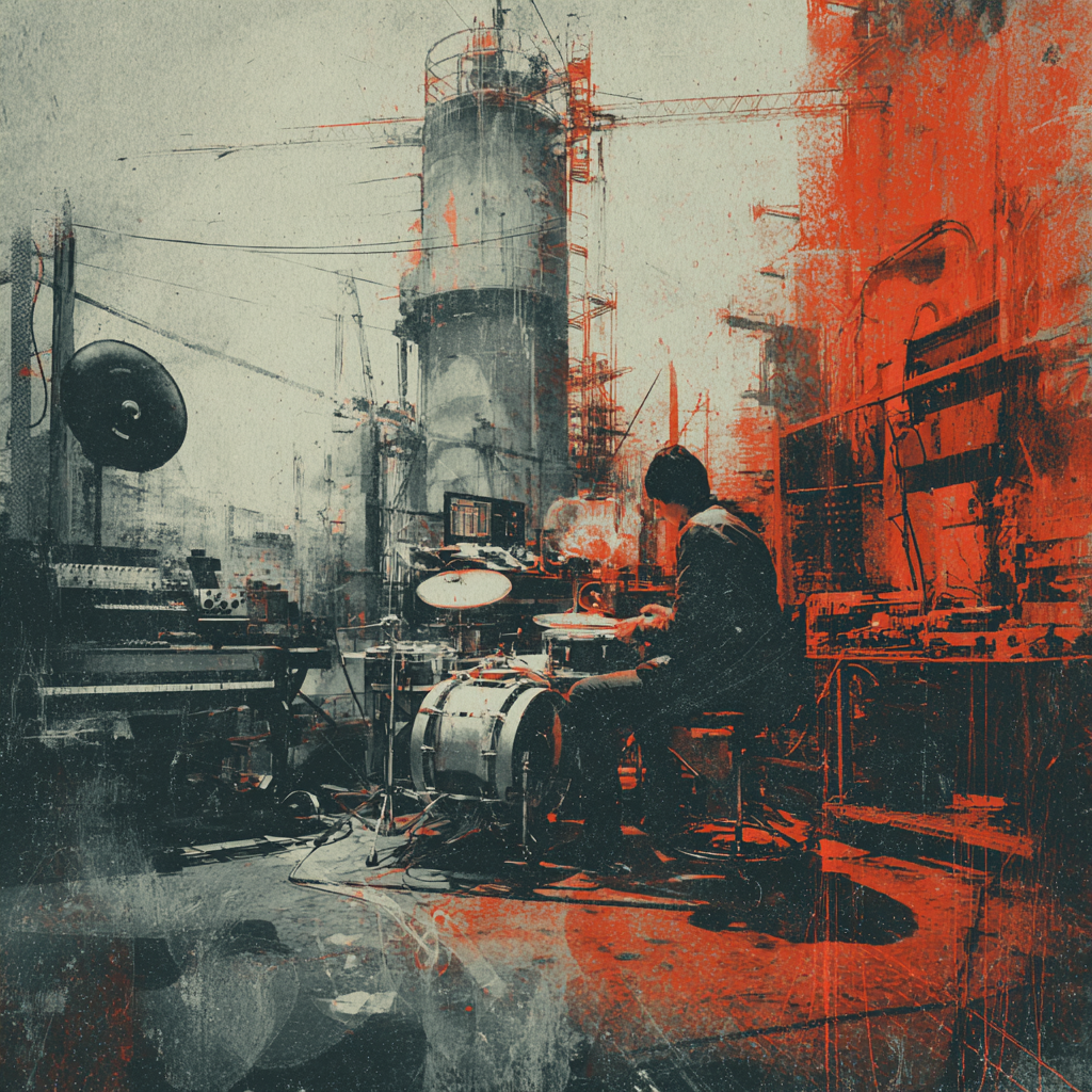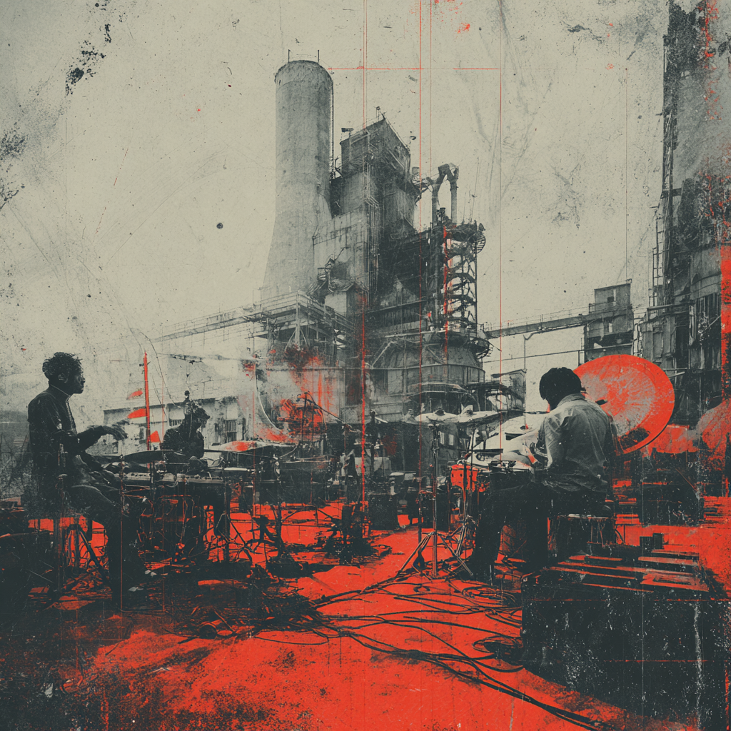 A bold fusion of industrial and Indian classic raga, opening with textured metallic percussion and processed machine sounds beneath a droning tanpura, Sitar and tabla interplay over mechanical synth basslines, building tension in the verses, The chorus erupts into distorted drum loops tangled with rapid-fire tabla, while airy synth pads support intricate raga-inspired melodies, A hypnotic outro layers sampled chants over evolving industrial rhythms, ‑pop, ‑pop music