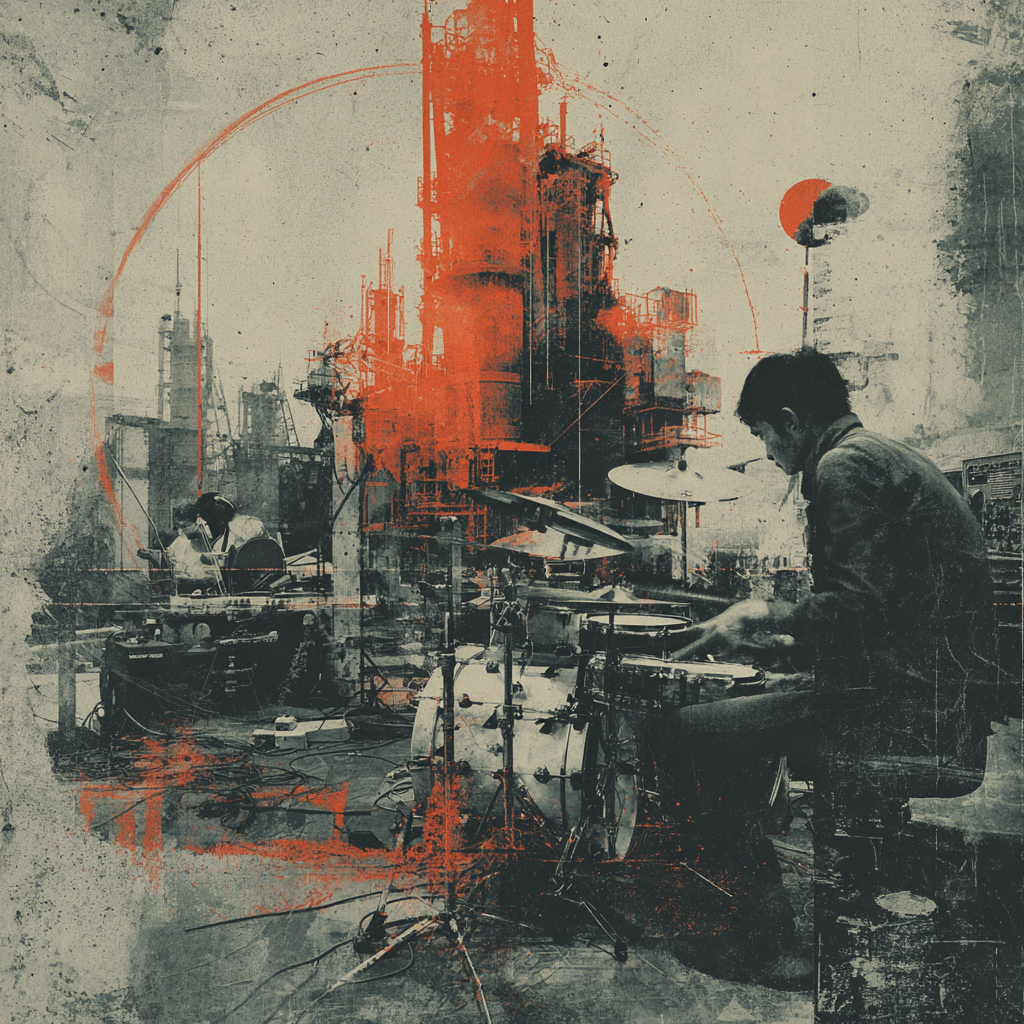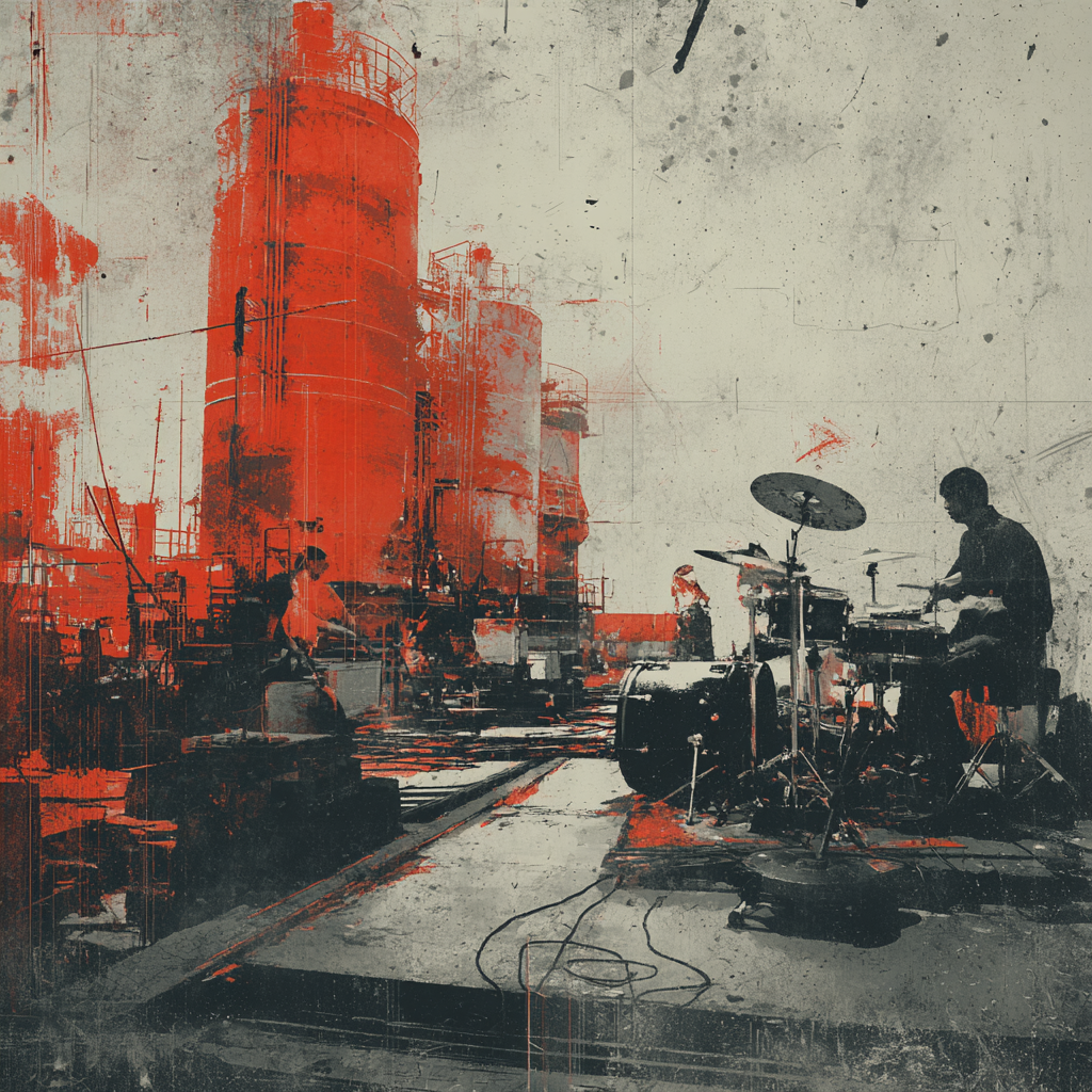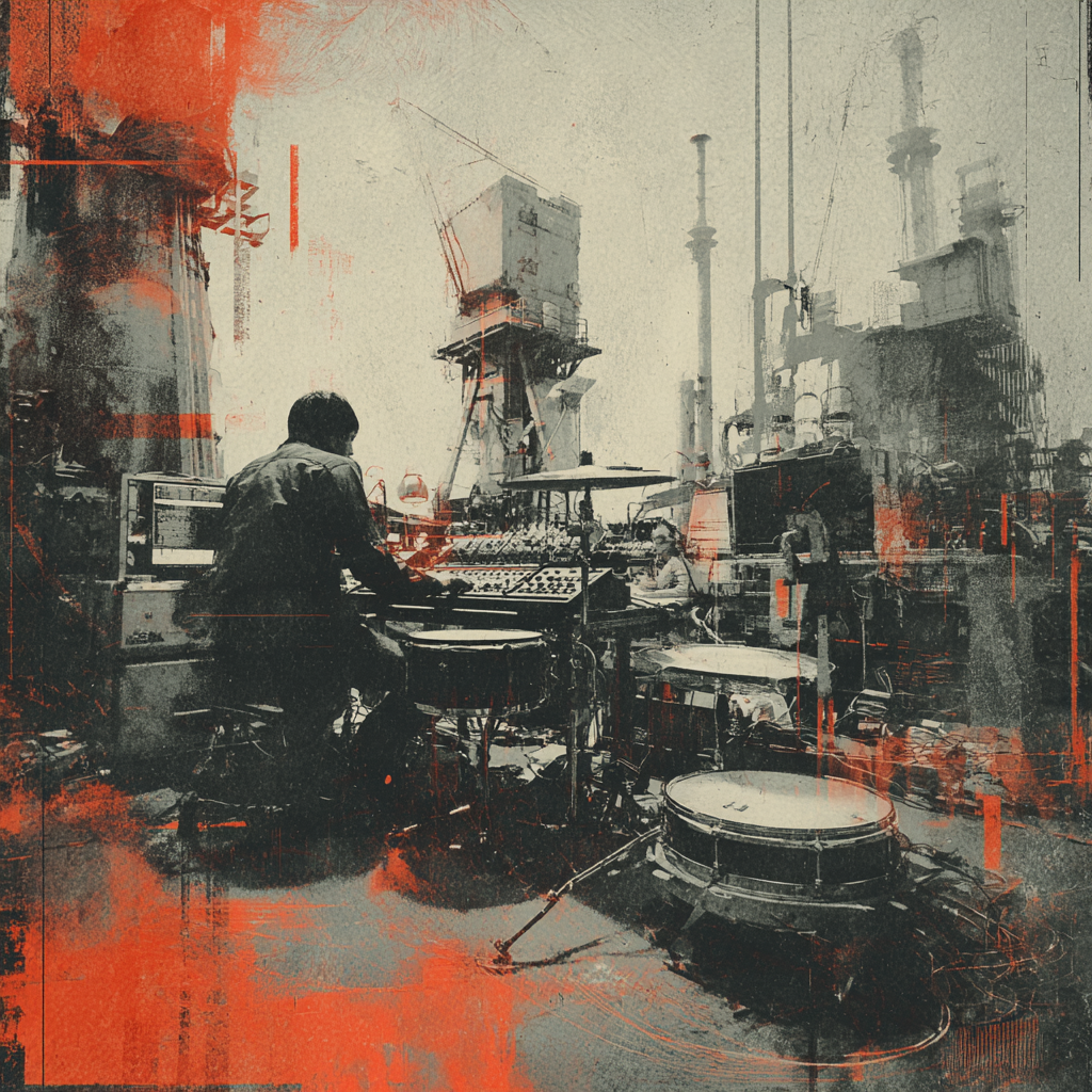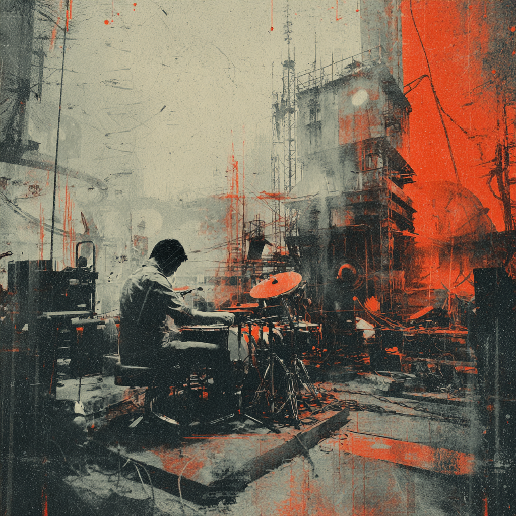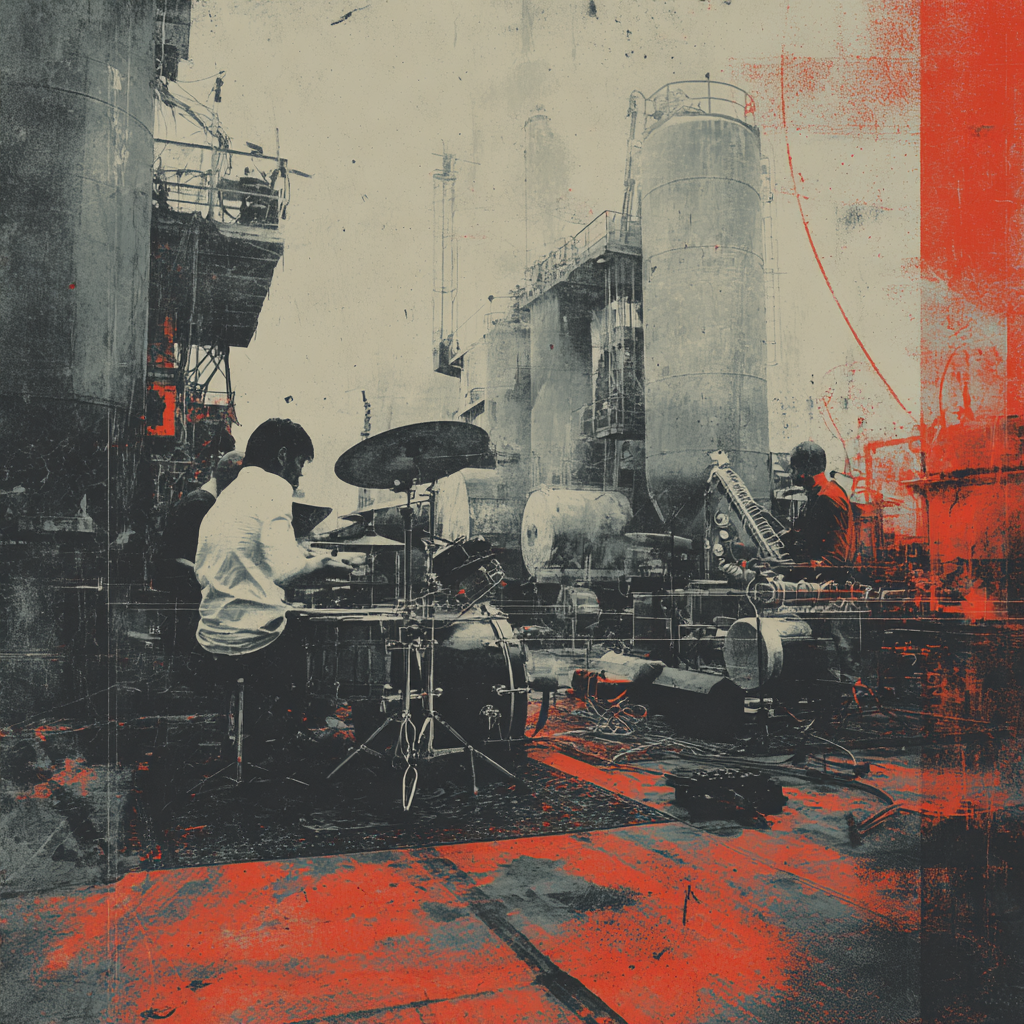 A bold fusion of industrial and Indian classic raga, opening with textured metallic percussion and processed machine sounds beneath a droning tanpura, Sitar and tabla interplay over mechanical synth basslines, building tension in the verses, The chorus erupts into distorted drum loops tangled with rapid-fire tabla, while airy synth pads support intricate raga-inspired melodies, A hypnotic outro layers sampled chants over evolving industrial rhythms, ‑pop, ‑pop music