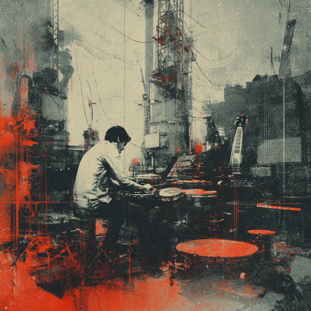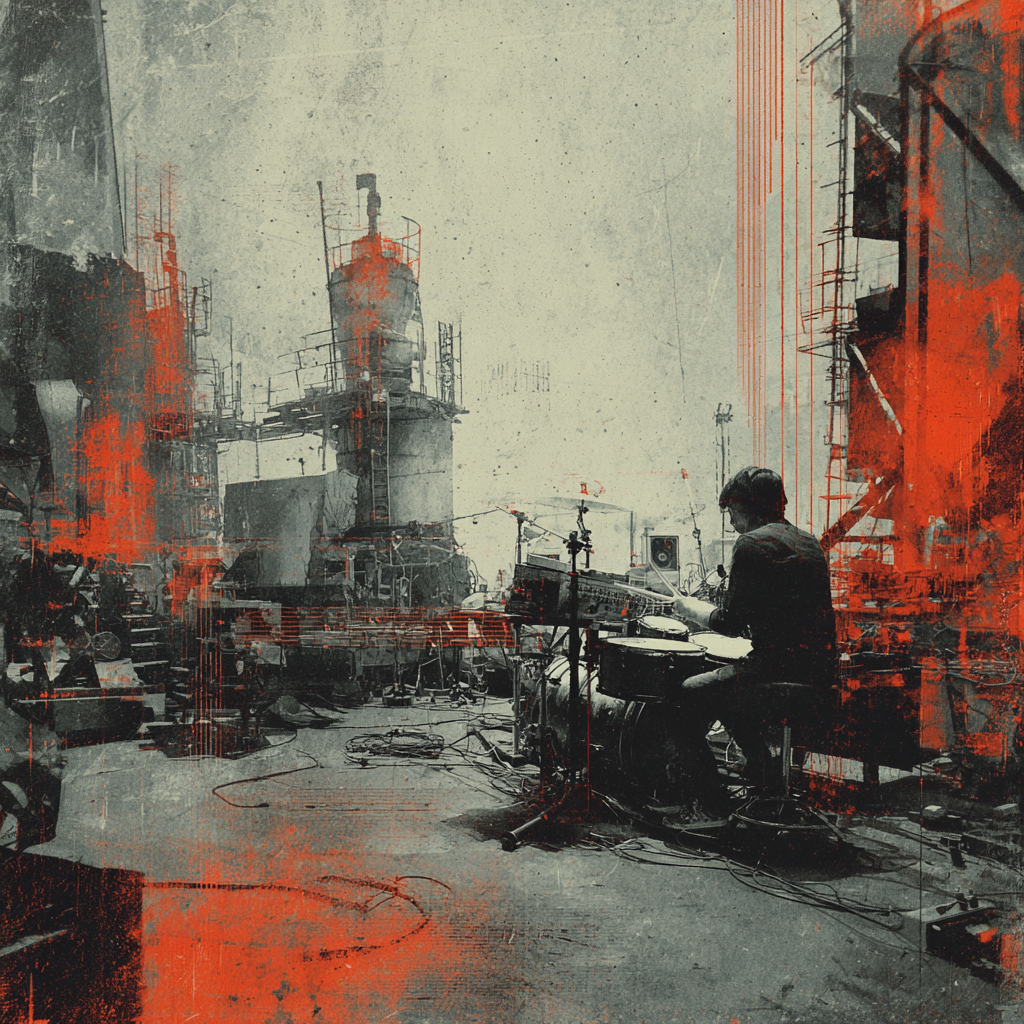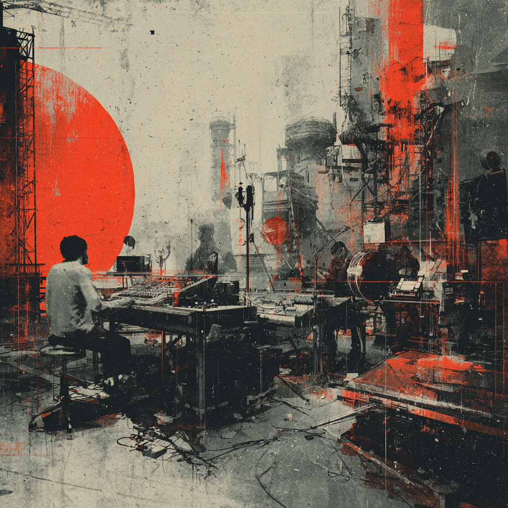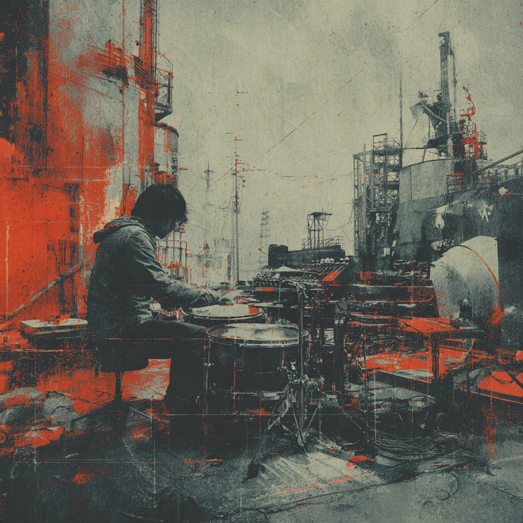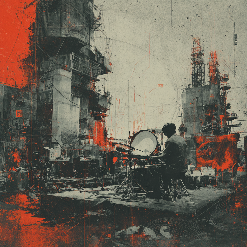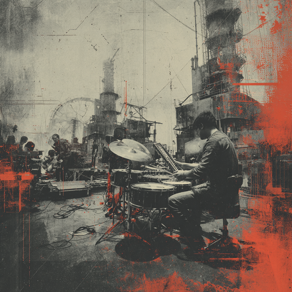 A bold fusion of industrial and Indian classic raga, opening with textured metallic percussion and processed machine sounds beneath a droning tanpura, Sitar and tabla interplay over mechanical synth basslines, building tension in the verses, The chorus erupts into distorted drum loops tangled with rapid-fire tabla, while airy synth pads support intricate raga-inspired melodies, A hypnotic outro layers sampled chants over evolving industrial rhythms, ‑pop, ‑pop music