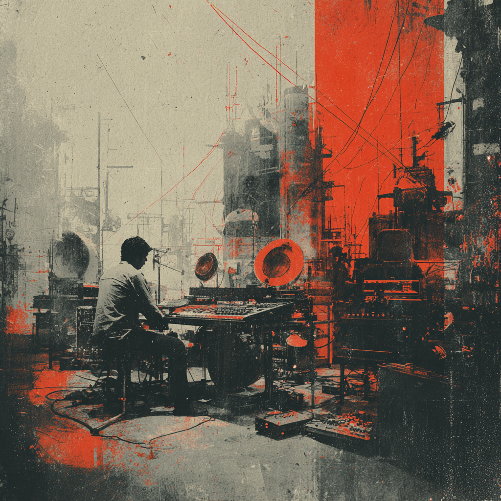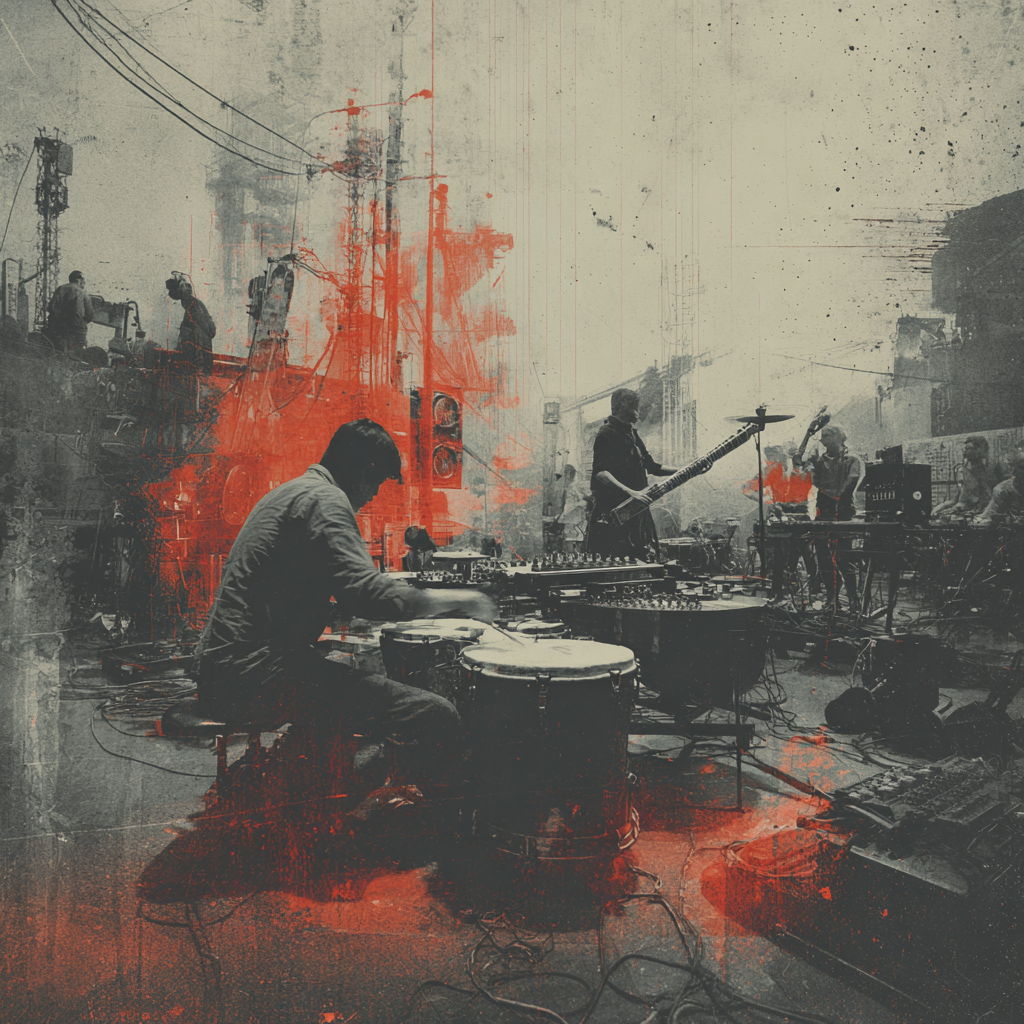 Metallic percussion and distorted synths launch the industrial-tinged intro, joined by driving programmed drums, Sitar and bansuri lines emerge, weaving raga-inspired melodies through the harsh electronic textures, Tabla rhythms interlock with machine-like beats, creating dynamic energy through the verses and instrumentals, while drones and evolving textures add hypnotic depth
