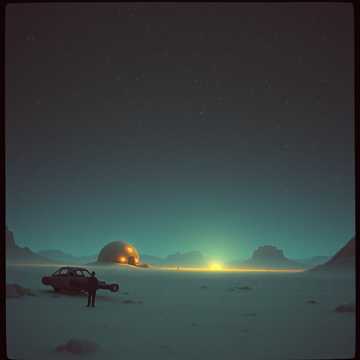 Cinematic sci-fi ambient electronic, epic and emotional, The track begins with a sense of vast, alien wonder and loneliness: deep, echoing sub-bass, ethereal and reversed pads, and sparse, glistening melodic plucks that sound like alien stars, A solitary, hopeful melody emerges on a synthetic, flute-like lead, representing the stranded protagonist, The track builds slowly, introducing a soft, persistent electronic rhythm like a heartbeat, layered with complex, evolving arpeggios that suggest ancient alien technology slowly coming to life, The climax is soaring and epic, with sweeping orchestral strings and powerful, resonant synth brass, conveying a burning, unyielding hope against impossible odds, The finale gently recedes back into the ambient soundscape, but now with a warm, sustained pad holding the memory of the hope