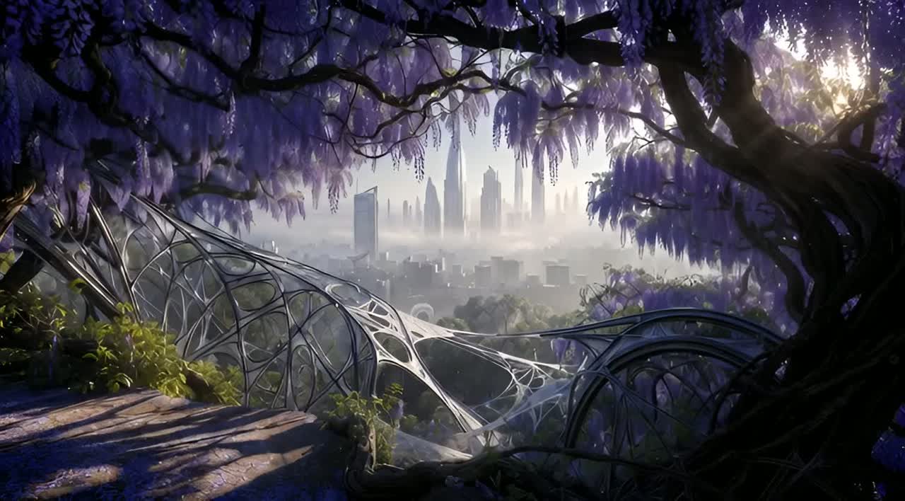A sci-fi soundtrack featuring a delicate, reverberant piano melody at its core, surrounded by warm string swells for longing and resilience, Expansive ambience weaves deep drones, pulsing sub-bass, and erhu processed with airy reverb and pitch-shifted for alien resonance, Plucked koto injects crystalline, neon-lit textures, while the gayageum adds warm, percussive and melodic accents with granular synthesis for mysterious depth, Metallic percussion and soft, glitchy electronics punctuate the soundscape, heightening its futuristic, otherworldly allure