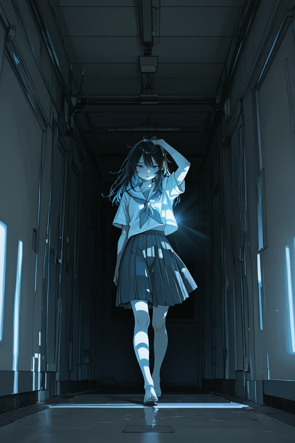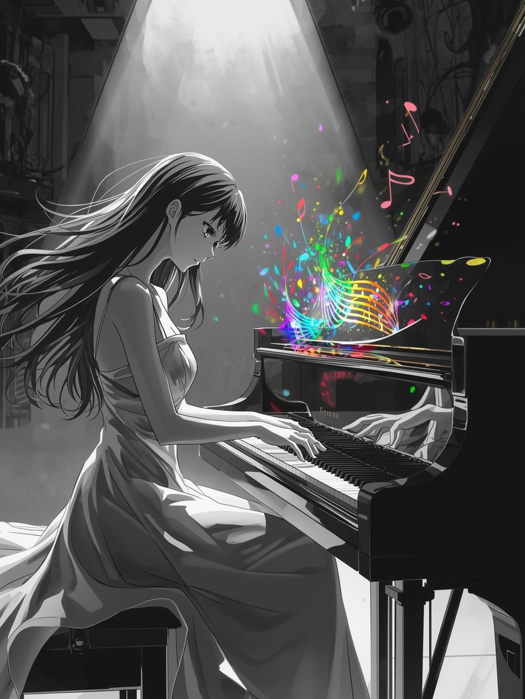 A deeply emotional J-POP ballad, Features a powerful, high-tone female vocal (v flower style), Core theme is a solitary, melancholic grand piano melody, layered with a warm analog synth pad (Juno-60 tone), The arrangement builds quickly to a massive, dramatic chorus, The chorus features a driving, reverbed rock drum beat, thick, distorted electric guitars, and a lush, sweeping orchestral string section, Dynamics are essential: sudden drops from chorus to the fragile piano and vocal, Includes a virtuosic, high-gain lead electric guitar solo in the bridge, followed by a final, explosive chorus, The song concludes on the isolated, resolving piano motif, [Studio Quality, High Fidelity, Stereo Soundscape, World-class Mastering]