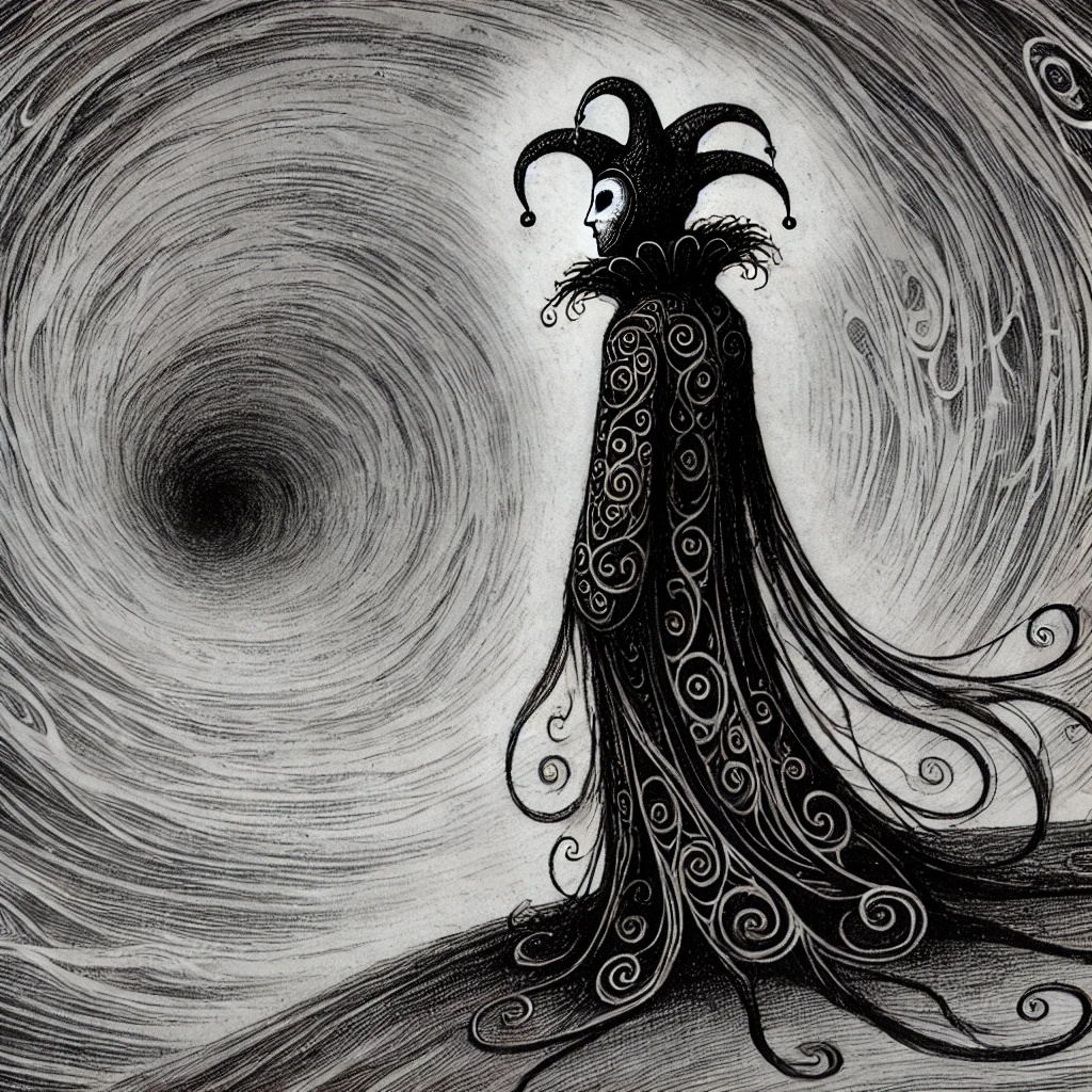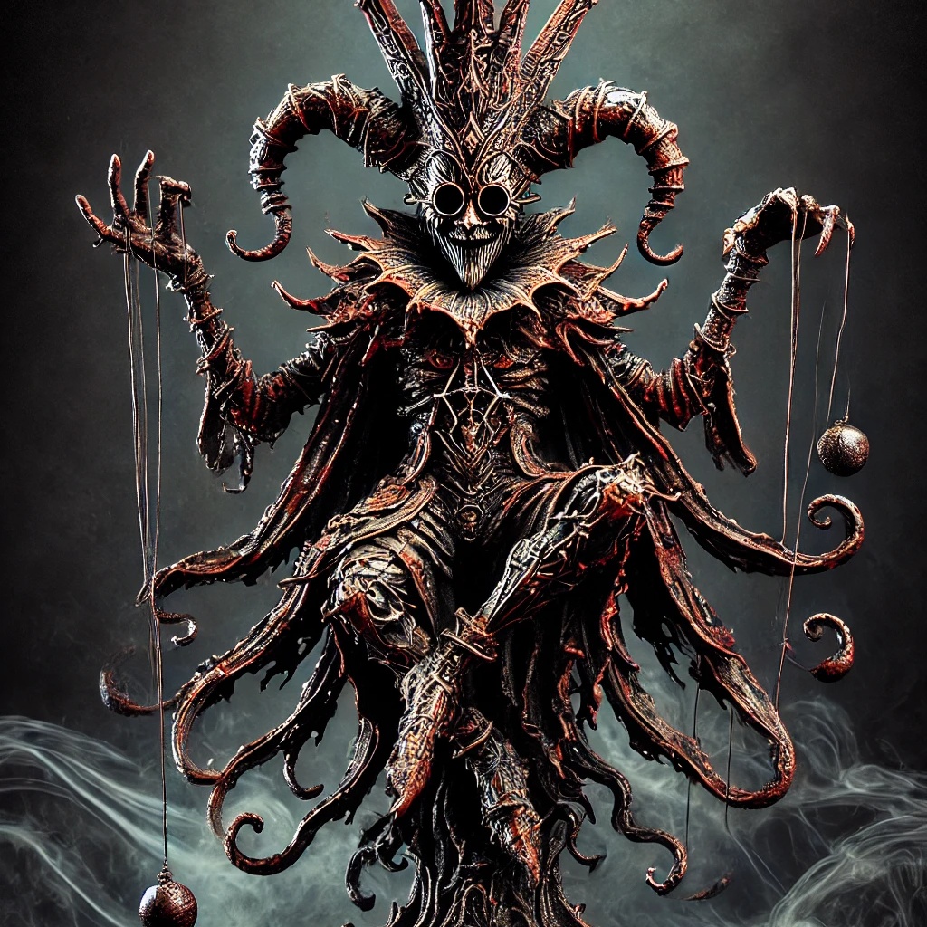 fantasy, symphonic metal, intense, powerful, divine, choral, opera, grand, eerie, eldritch, cosmic horror, dramatic, emotional, madness, low baritone voice, sarcastic, comedic, jovial, fabloo, absurd