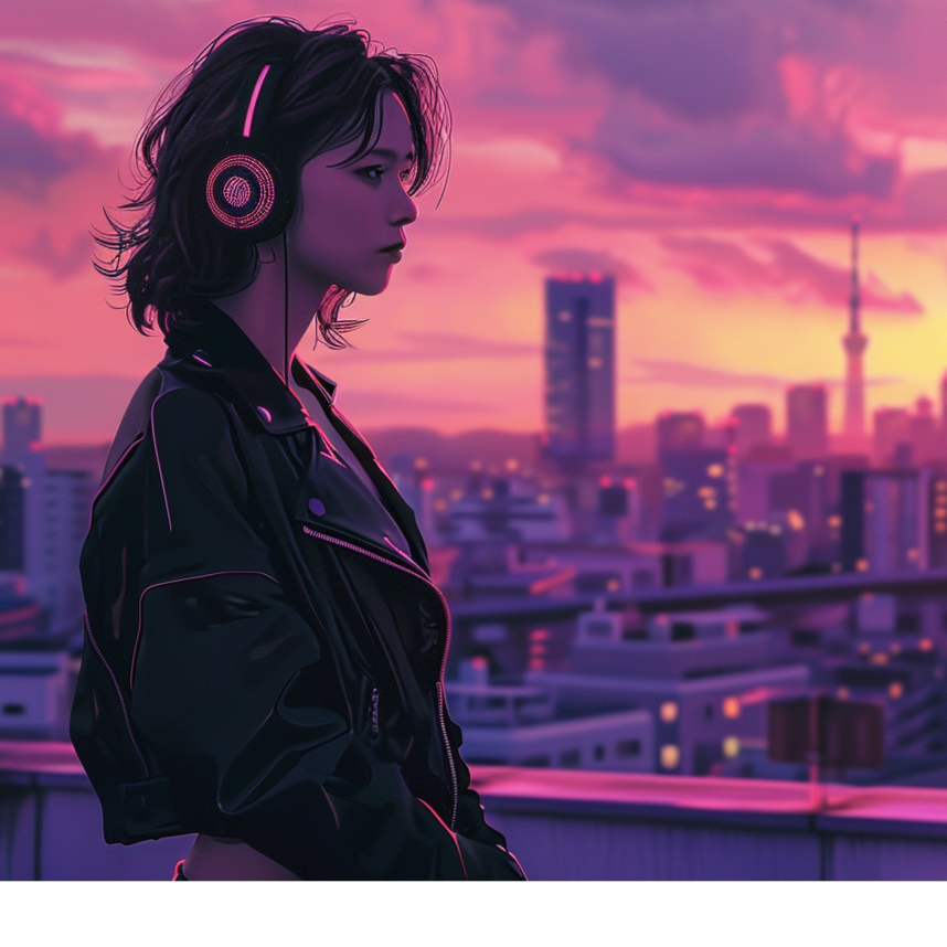 Lo-fi rhythm with soft electric keys, airy synth veil, gentle hip-hop drum patterns—echoing a breezy night on a high-rise Tokyo rooftop—clean stereo, no environmental noise, 5 minutes, ‑vinyl crackle, ‑record pops, ‑tape hiss, ‑cassette noise, ‑distortion, ‑ambient noise, ‑rain sound, ‑wind sound, ‑Lo-fi noise