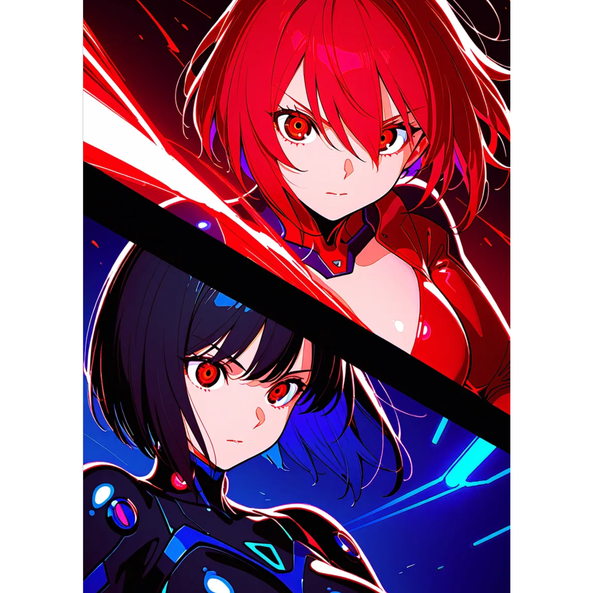 Drum'n'bass, cinematic electro-pop, fast BPM (~170), dual female vocals, vocal style inspired by a breathy, emotional male voice with glitchy pitch shifts and dramatic dynamics, partial Vocaloid processing, anime opening theme for a futuristic mecha war series, energetic synth bursts and melancholy electro textures