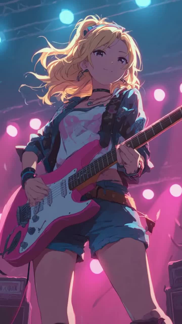 Female Vocal Fixed, Japanese, V-Rock, Bpm175, key:E, Chord Progression-[Verse: | E | G#m7 | Amaj7 | Bsus4 B |], [Pre-Chorus: | C#m | B/D# | Emaj7 | F#7 |], [Chorus:| A | B | G#m7 | C#m | A | B | E | E |], A high-energy live concert scene in a neon-lit urban night, A young, all-female rock band is performing on stage, fusing the catchy melodies of J-POP with the dramatic, dark energy of Visual Rock (V-ROCK), In the spotlight are two charismatic female vocalists â one with a cool, edgy rock look, and the other with a glamorous, emotional diva vibe, They sing with passion under bright lights and swirling smoke, while guitars scream and the crowd throws fists in the air, Their outfits blend modern rock fashion with visual-kei influences: dramatic colors, layered accessories, unique hairstyles, Behind them, massive speakers and a glowing âJ-POP Ã V-ROCKâ logo dominate the stage, The scene is vibrant, stylish, and full of speed, emotion, and energy