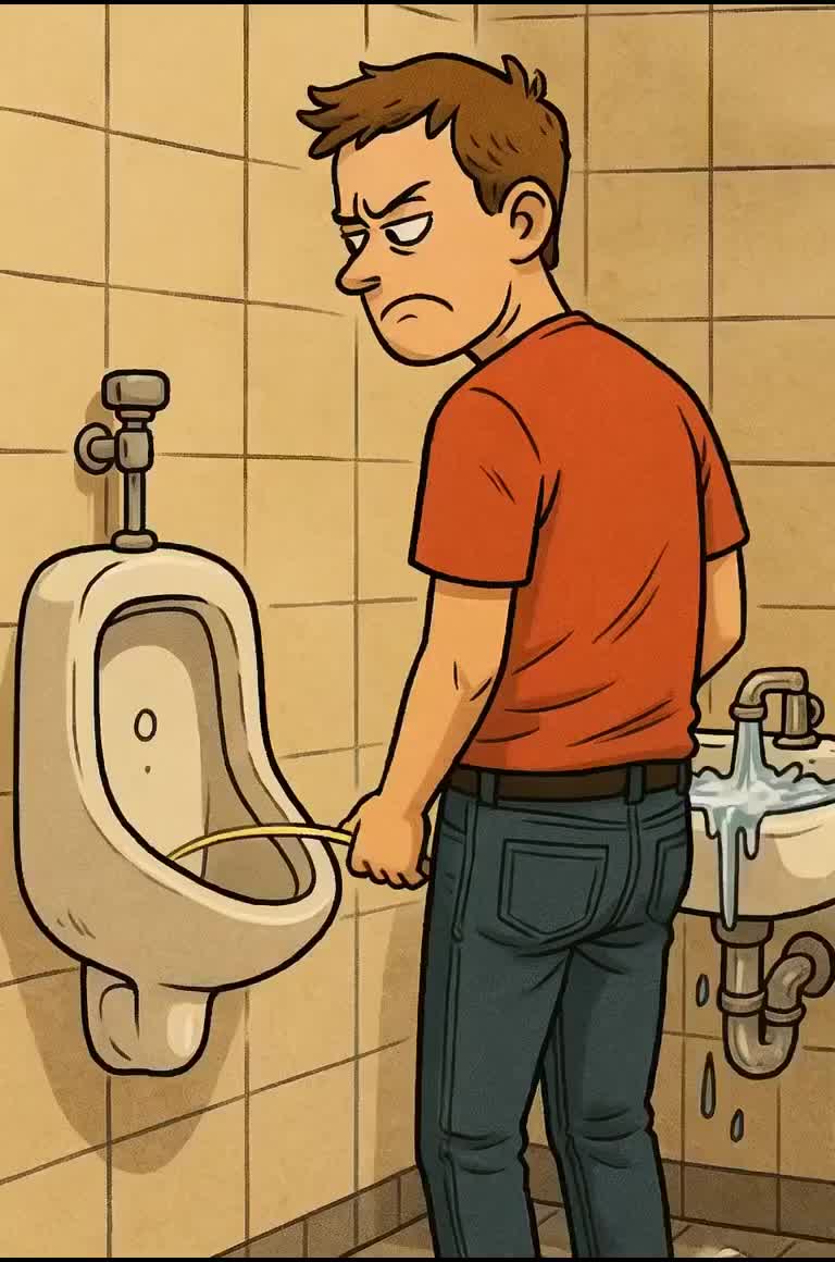 Hard-hitting warehouse techno intro rides distorted festival bass, gradually layering industrial sounds, Drum & bass build-ups surge with ticking beats; dubstep super-drops slam with warped modulations, Heavy beatbox percussion and sharp record-scratch FX punch through; male–female call-and-response vocals and comedic police-radio snippets weave in, amped by layered sirens and water-gun splashes, Doubled lines overlap with echo harmonies, maintaining a playful, cheeky “bathroom bust” vibe throughout
