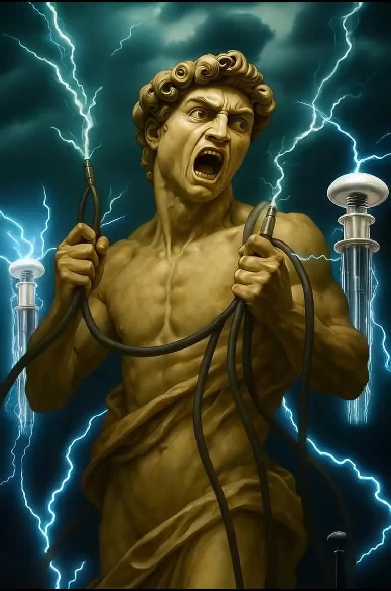 Peak time techno, neo classical rave, cartoon chase energy, 134 BPM, Vivaldi “Summer” violin hook chopped + tremolo, slapstick breaks, thunder builds, warehouse drops, comedic stabs, fast hats like insects, cinematic hail finale