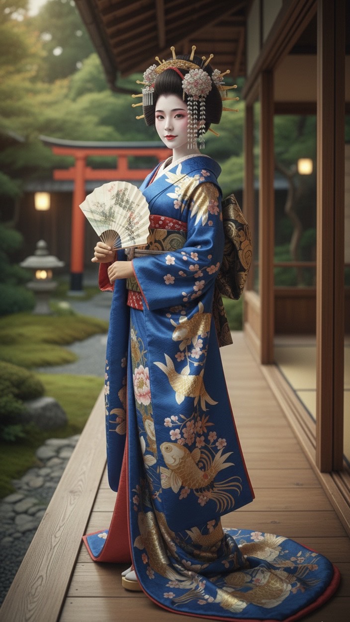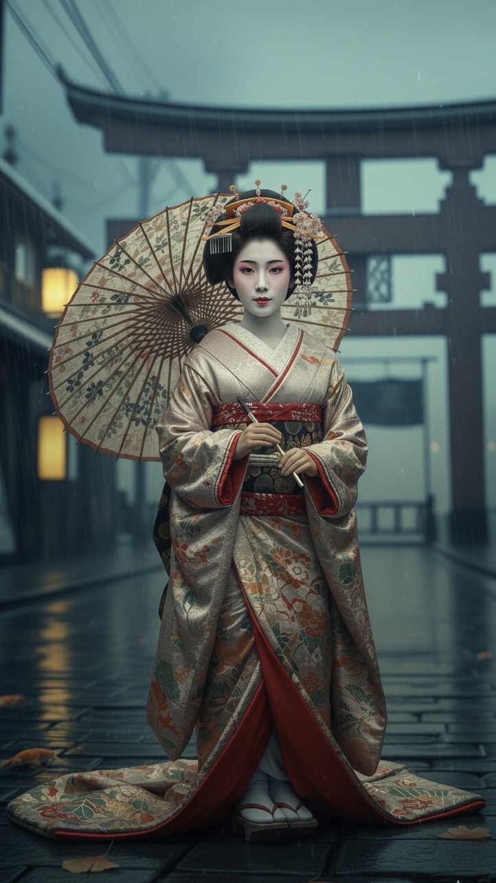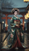 Slow Sensual Jazz, Nocturnal Atmosphere, Husky Kimono-Oiran female vocals, Traditional Japanese instruments mixed with Jazz, 65bpm
