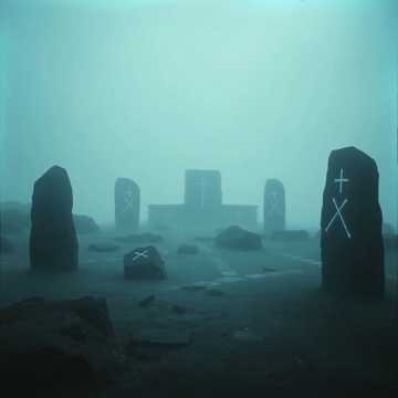 deep sound, slow build, vikings drums and chimes, horns FEMALE vocals chant ominous hymn of the death march