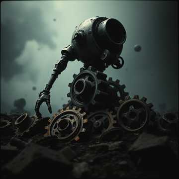 Destructive screeching over the melancholic death of a robot, the last of its kind, Dubstep, soundboard, techno