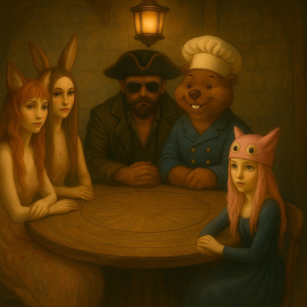 The style of the song is reminiscent of a folk pirate ballad, with rough male vocal, The manner is playful and ironic, with an emphasis on unexpected plot twists, Between verses, there are comments from the crew in the form of drunken but colorful remarks, The rhythm is moderately marching, slightly swaying, accompanied by mandolin, accordion, barrel, and bone spoons, The intonation is caricatured and serious, with an emphasis on theatricality, The song should be performed as a table tale about days gone by, with elements of parody of heroism, The animals are allegories, but are interpreted literally, The finale is a cheerful toast at the end