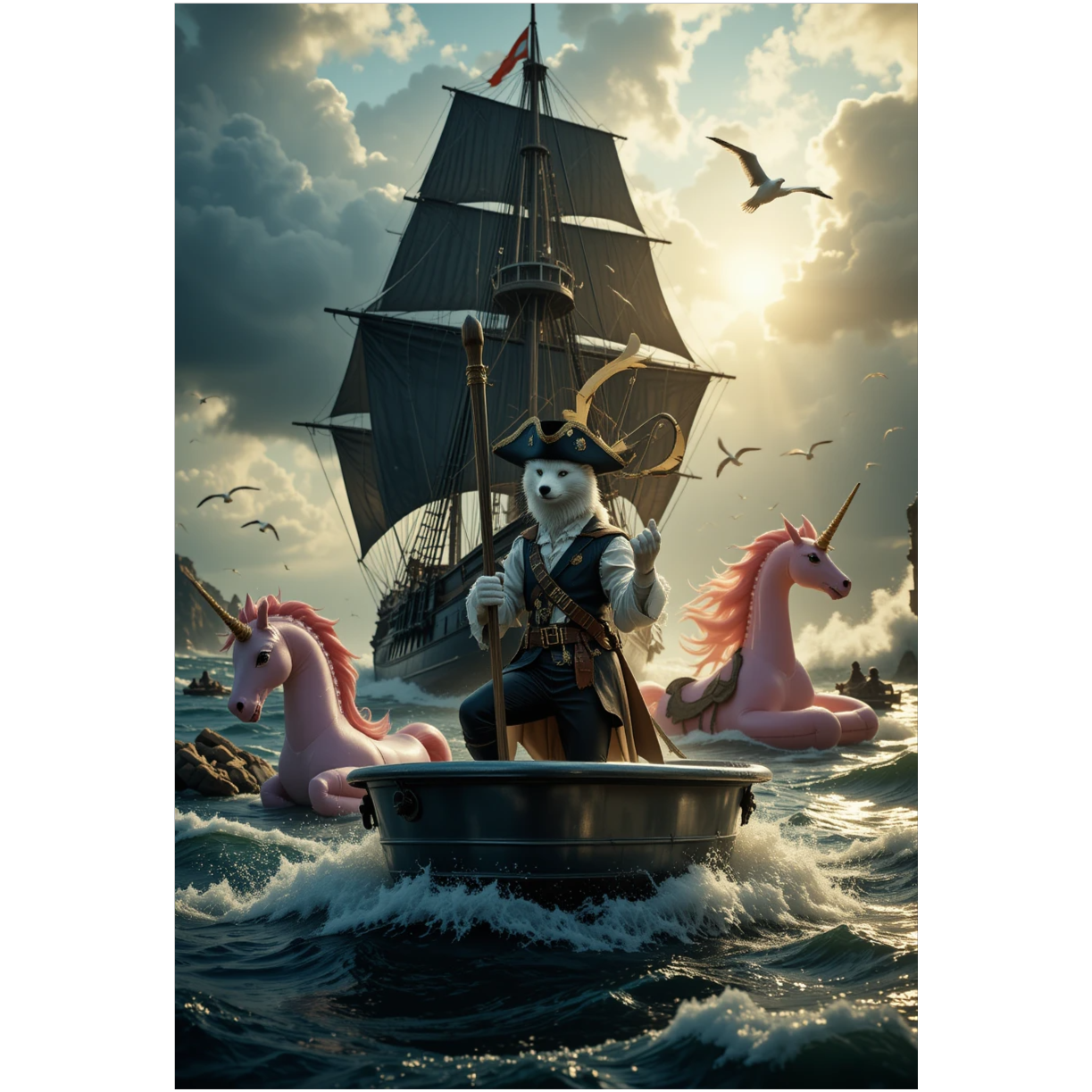 Opening with layered accordion and rowdy folk guitars, the sea shanty rock groove launches into raucous maritime chaos, Narration with comedic timing weaves in, punctuated by abrupt hip hop beats and cheeky scratching, ASMR whispers and creative 3D panning enhance the absurd storytelling, with chorus and verses bouncing between riotous group chants, FX-driven transitions, and immersive soundscapes that amplify the unpredictable fun