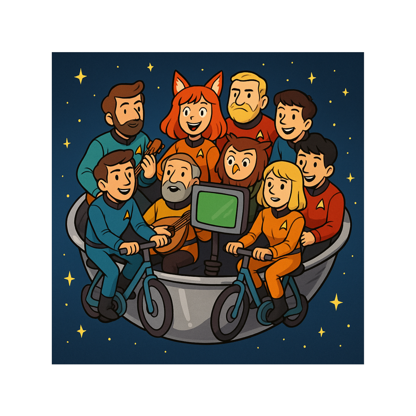 Mood: surreal, ironic, moody but playful; like a drunken bar crew preparing a cosmic voyage