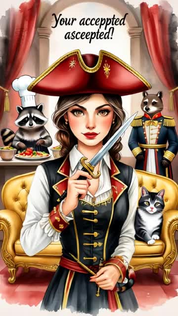 "Create a playful, whimsical Russian ballad with poetic lyrics, Female vocalist, soft piano and accordion, Theme: love on a ship, animal characters, fairy-tale adventure, Mood: joyful, ironic, slightly dramatic, Add a record scratch after 'тот крик!!!!' and a giggle after 'накрывайте на стол…', "