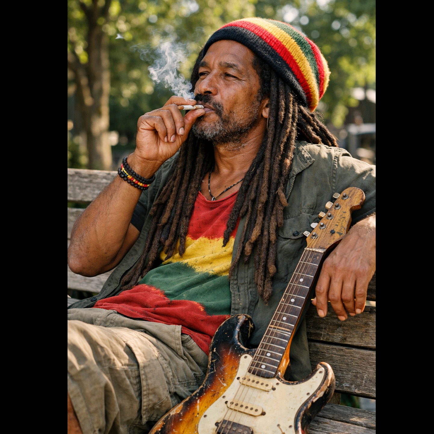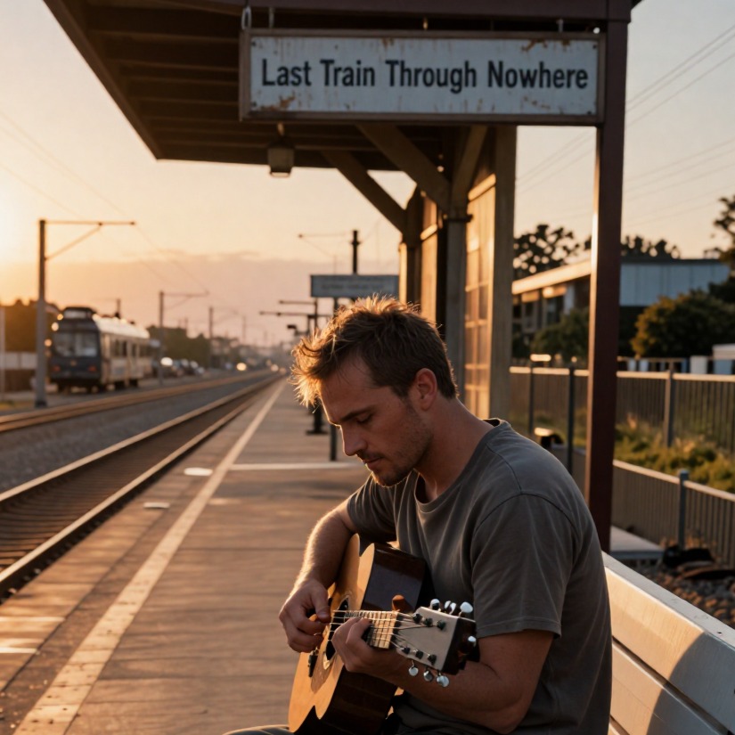 Indie folk-pop with a rhythmic, percussive acoustic guitar style, The arrangement features a bright, steel-string acoustic guitar playing a syncopated fingerstyle pattern with percussive slaps on the backbeat, A melodic electric bass follows the chord progression with occasional slides, Mid-tempo at 105 BPM in the key of G major, Male vocals are delivered in a conversational, rhythmic baritone that transitions into a more melodic, belted tenor during the chorus, A clean electric guitar provides melodic fills and a bluesy solo with light overdrive and spring reverb, The percussion is minimal, relying on the acoustic guitar's body hits and a subtle shaker