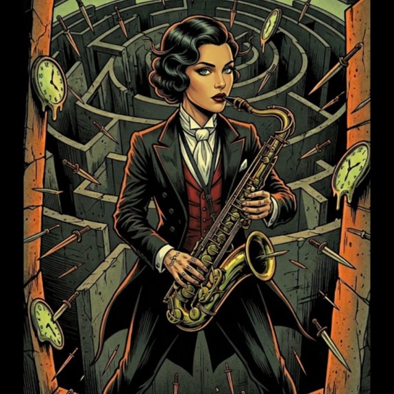 Avant-garde indie, art-punk, extreme dynamic contrast, prominent tritone intervals, ultra-dry anechoic production, clinical high-fidelity clarity, zero reverb, zero room mics, nervous 7/8 rhythm vs relaxed 4/4 half-time, complex Gavin Harrison style drumming, highly theatrical dramatic female vocals, raw stage-play intensity, unhinged delivery, pristine wide-stereo DI instruments, dry avant-garde tenor saxophone, 110 BPM