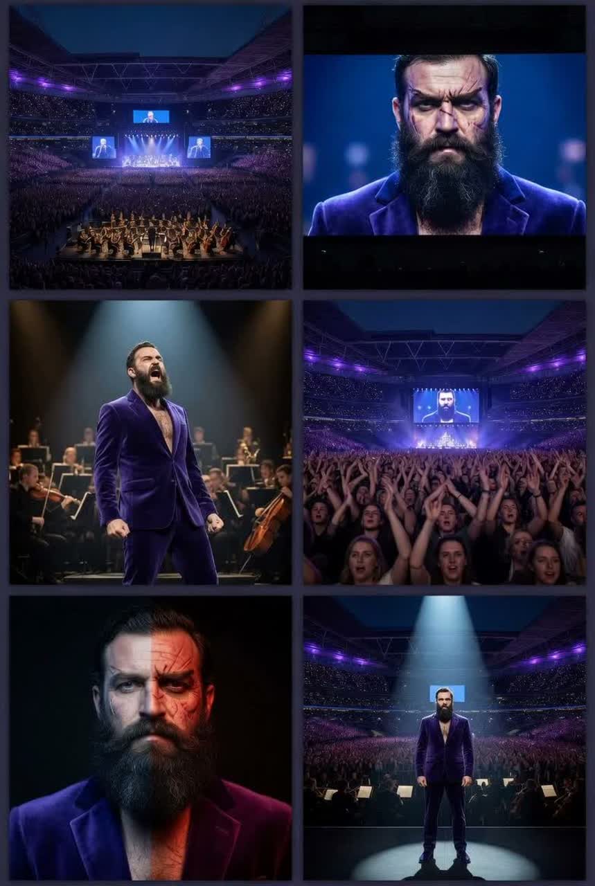Opera rock anthem, dramatic strings, electric guitar, theatrical vocals, Baroque trap, harpsichord + 808s, lyrical complexity, elegant grit, operatic tenor with a snarling rock rasp, capable of pristine falsetto, thunderous power, and deeply vulnerable vibrato, lush, layered, and unapologetically grandiose—rock opera meets radio-friendly chorus, all wrapped in a campy, theatrical swagger that somehow feels both epic and deeply intimate, rock