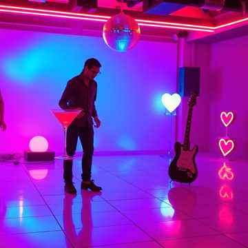Brazilian sertanejo universitário meets glossy disco-pop, male vocals, Four-on-the-floor kick and round, percussive bass drive the groove, with bright electric guitar licks answering the vocal phrases, Verses stay tight and rhythmic; chorus explodes with stacked harmonies and a shiny synth pad, Clean acoustic strums tuck under the hook, with a short, funky guitar break before the final chorus to lift the energy one last time, sertanejo, electric, disco