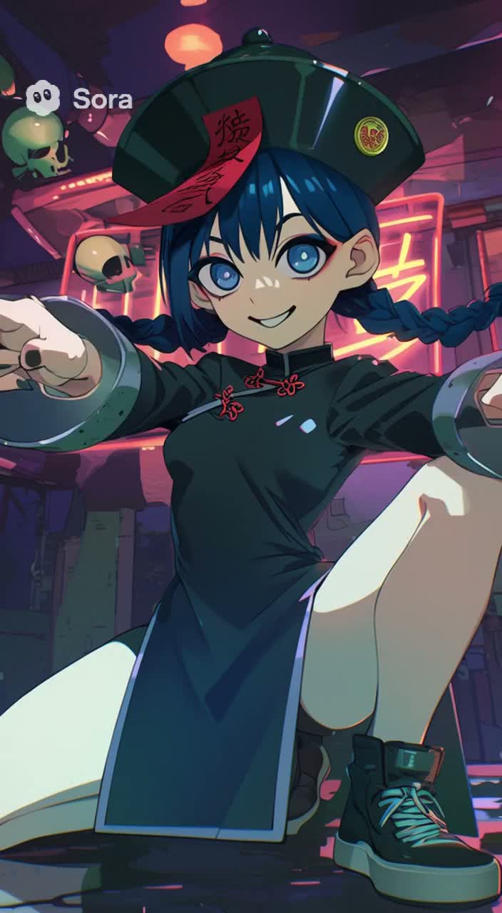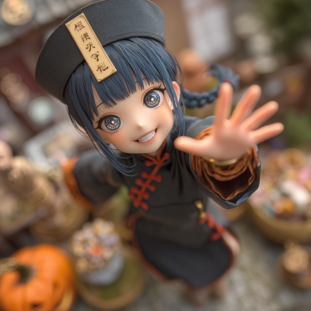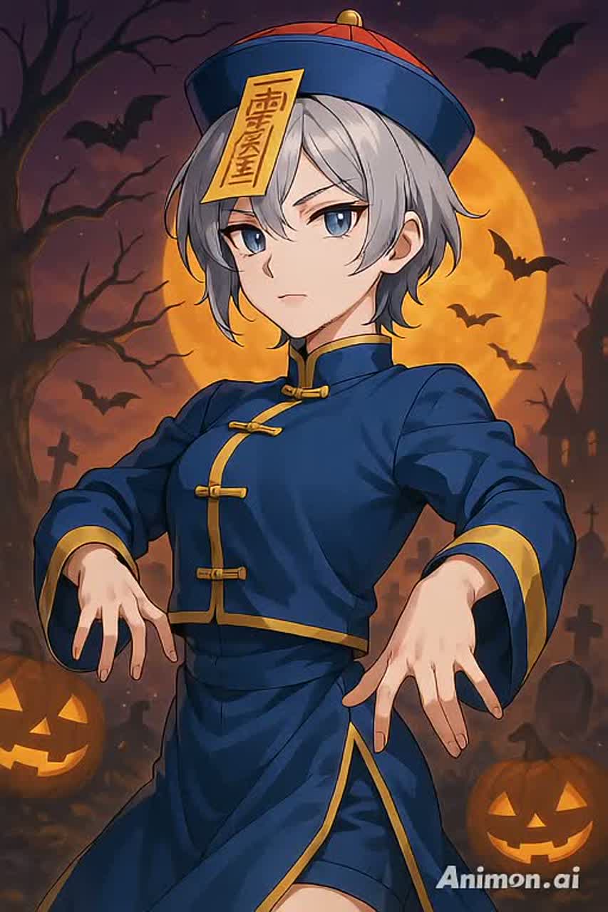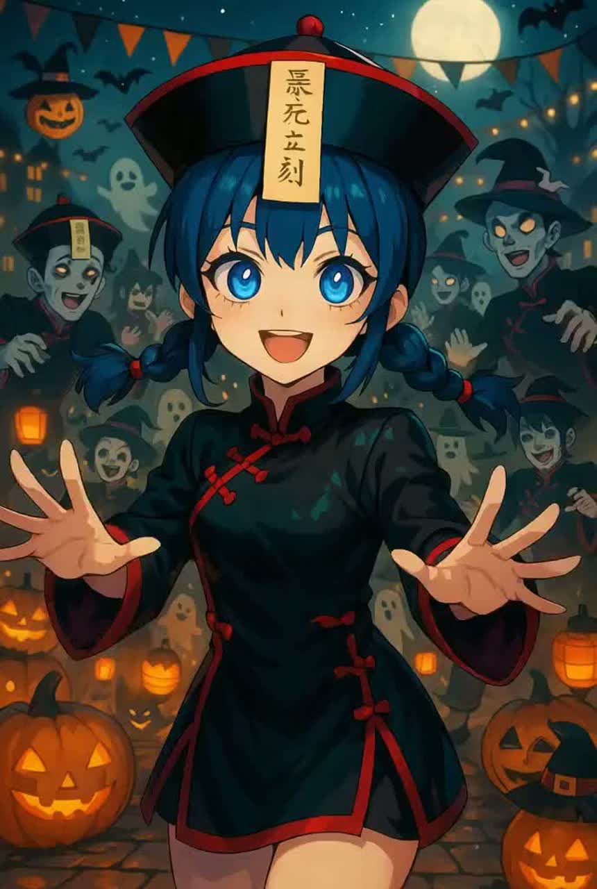 Ultra-fast tempo kawaii EDM idol song for Halloween, BPM extremely high, frantic and playful energy, Cute idol-style female vocals with rapid-fire delivery, call & response chants: "Kyonshee! Fancy! Crazy!", Arrangement starts light and bouncy, then quickly builds into chaotic EDM drops with heavy kick, sharp hi-hats, and hyperactive synth arpeggios, Include spooky sound effects: ghostly "woo~", witch laughter, monster growls turned into funny pitch-shifted voices, and candy-wrapper percussive sounds, Breakdowns use toy piano, twinkling bells, and whispers like "trick or treat", before exploding back into faster, louder drops, Final chorus goes full-speed festival mode, with layered kawaii group vocals, crowd chants, claps, and distorted spooky giggles, Overall mood: hyper-cute, chaotic, spooky-fun Halloween party, perfect for idol dance performance