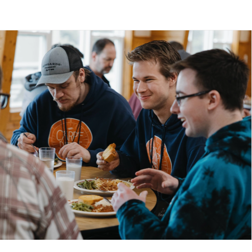 It should capture the spirit of men gathering weekly on Thursdays at 6:00 PM to share, laugh, eat, and hear a speaker, Include verses, choruses, a bridge, and a tag/outro, Lyrics should reference faith, brotherhood, and showing up even when tired, in a fun and relatable way, Keep it upbeat, soulful, and humorous, in a style suitable for guitar or piano accompaniment