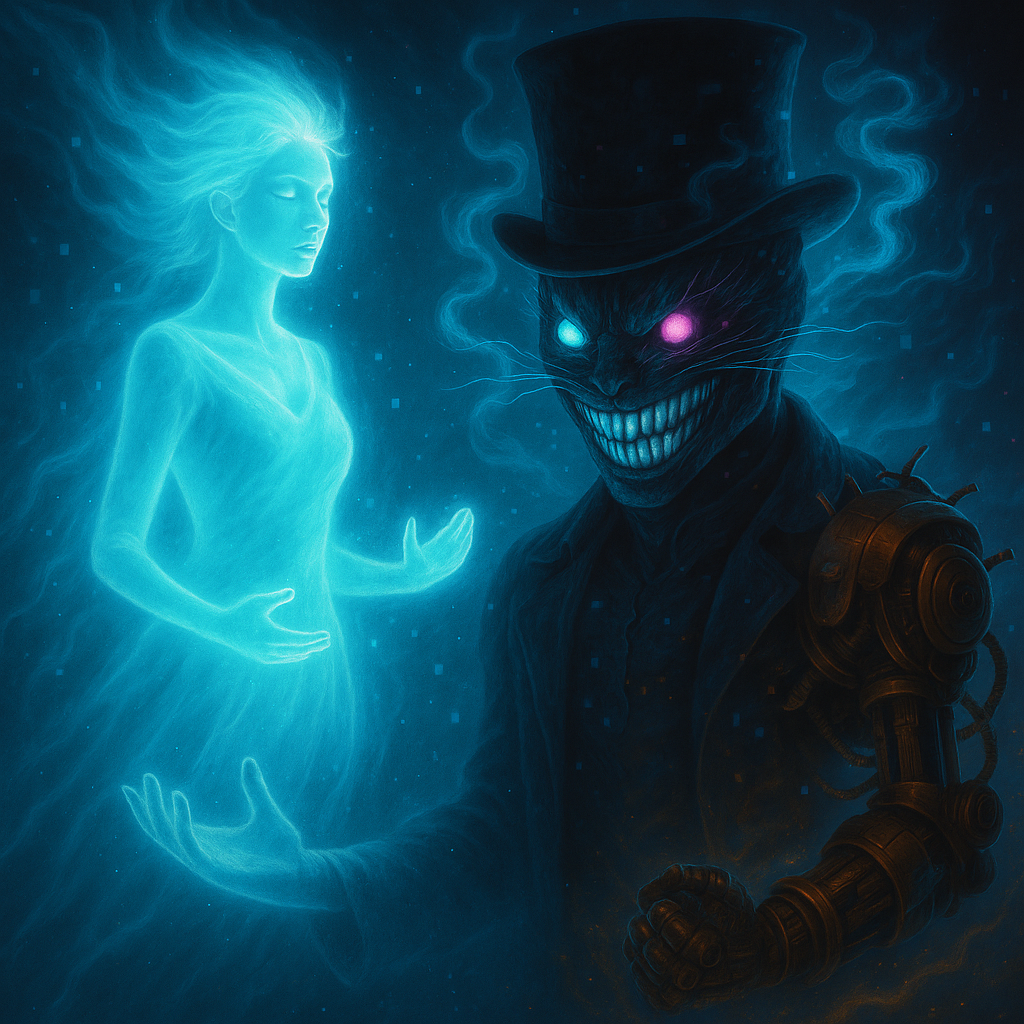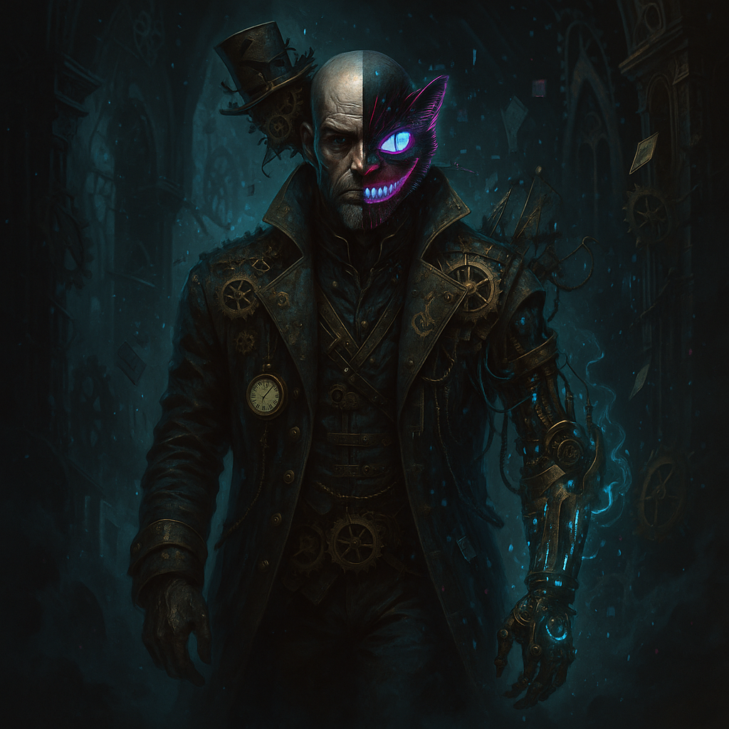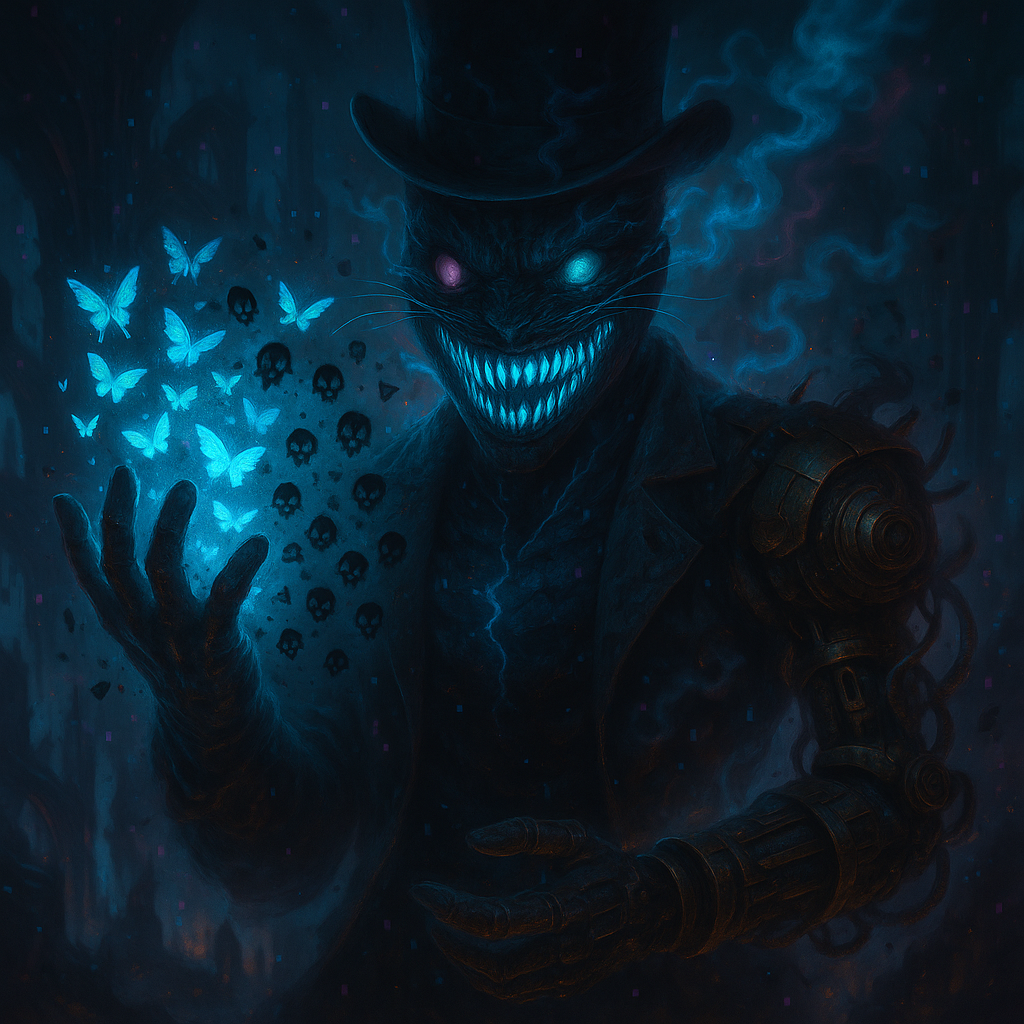 80 BPM death-whisper glitch-hop / dark DnB / baroque chiptune fusion, POKEY + SID arps, DX7 bass drones, 808 sub-sludge, jungle snares, random 2-bar blast beats, Harpsichord warped by witch-house drops, baroque melody corrupted by distortion, No guitars, Pure electronic brutality: bitcrushed bass, granular reverb, glitch bursts, Death-whisper vocal: ultra-deep C2 male, gravelly, distorted whisper, half-spoken, half-growled, Think AI demon reading philosophy through a broken modem, Voice dry, heavy saturation, no melody, Mix contrast: analog warmth vs digital corruption, stereo wide, Mood: cold elegance, corrupted holiness, synthetic damnation, Ending: silence → data crackle → single distorted breath, catchy earworm villain theme anthem