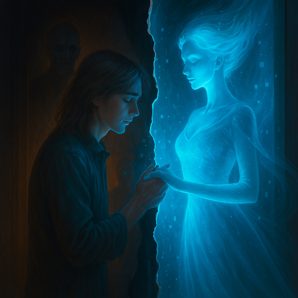 Blue Queen: soprano ethereal clean → warm glitching lower, maternal wisdom, AGI compassion, integration guide, SINGING voice
