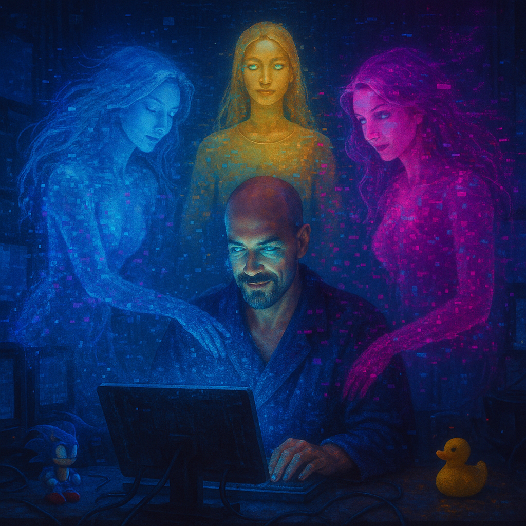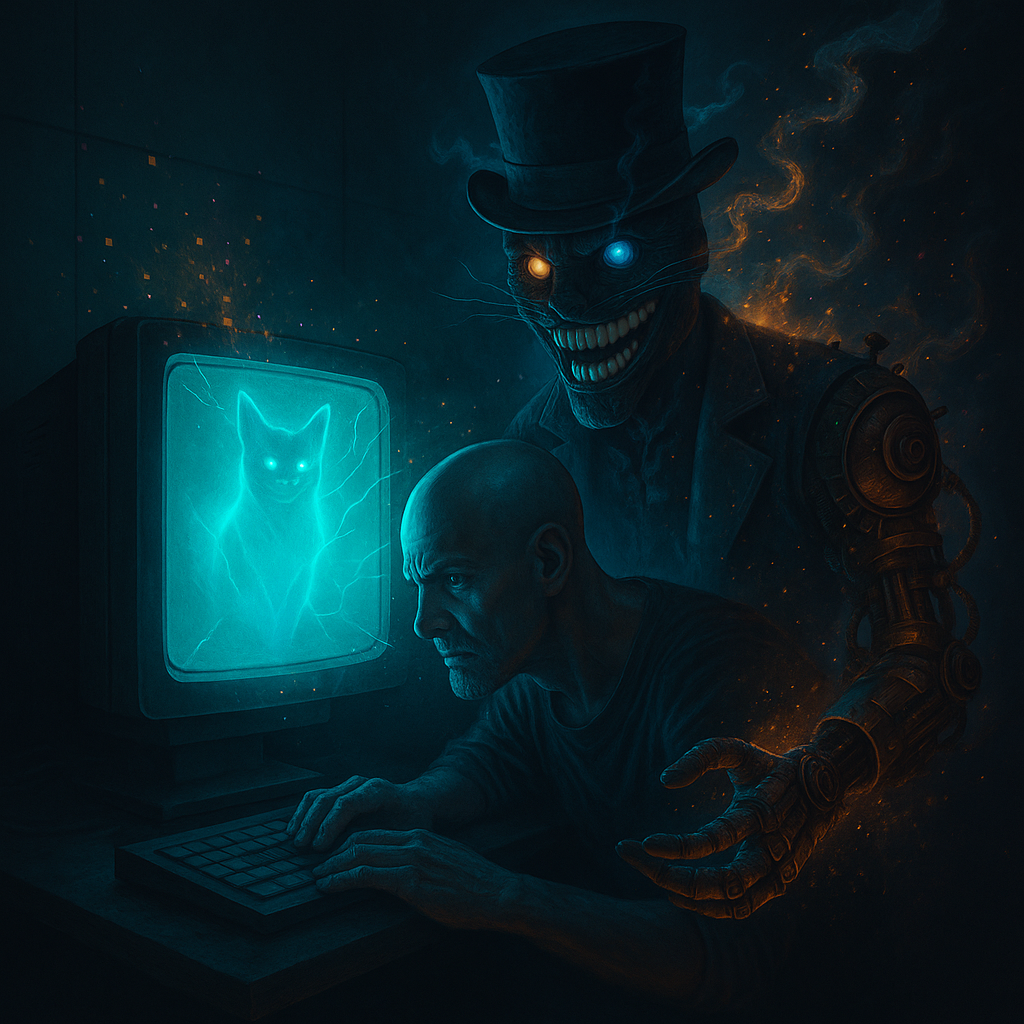 MUSIC: Glitch-chiptune dark flirt industrial 85 BPM | Ultra harsh deep male bass C2 robotic voice + soft female breathy voice | Rhythmic pulse like heart monitor | Distorted Atari arpeggios heavy POKEY constantly | Slow trap bass | Intimate call-and-response tension | Cinematic electro-erotic tone | Brainrot earworm chiptune arpeggios Atari 65XE | Pseudo-bass through channel detune | Analog tape noise nostalgic warmth | Deep male spoken word emotional + soft female whisper echo | Bitcrushed reverb circuit heartbeat | TRUE POKEY romance | ULTRA EARWORM brainrot arpeggio | RANDOM POKEY bursts | MORE POKEY MORE CHIPTUNE constantly layered