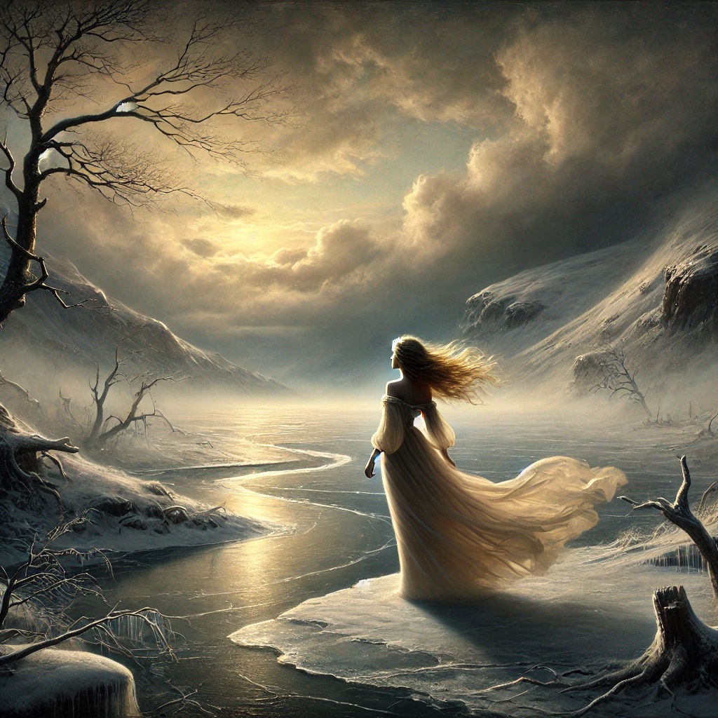 Begin with delicate acoustic guitar arpeggios and soft flute melodies evoking spring dawn, gentle atmospheric textures suggesting birdsong and morning breeze, warm deep male vocal with tender hope, Light strings enter with lyrical grace building progressively, Piano joins with bittersweet harmonies reflecting growing frustration, Gradual shift from brightness to melancholic tension, Emphasize poetic end-words through melodic lifts or harmonic shifts, Strategic crescendos mirror attempts to move an unmoved heart, Contrast moments of natural beauty with harder rhythmic elements suggesting alpine harshness, Finale grows in orchestral richness yet resolves to resigned intimacy, lone guitar or piano phrase echoing the futility of catching wind in nets, fading with acceptance rather than despair
