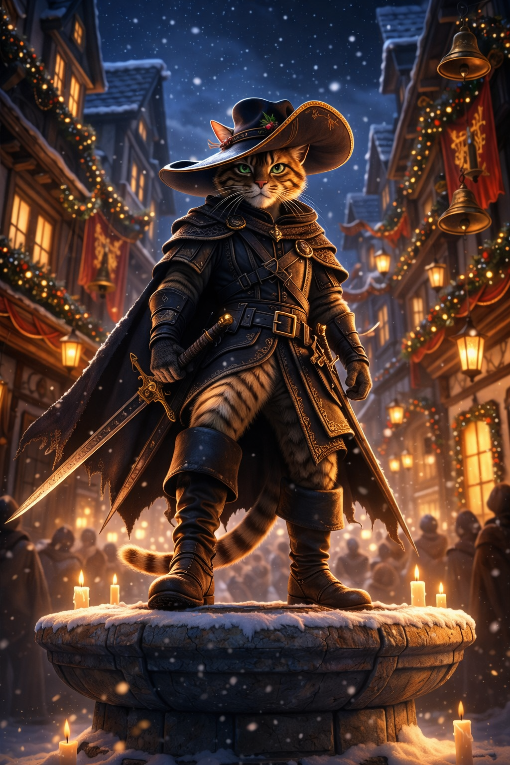 Storybook pop, cheerful fantasy pop, acoustic guitar and bells, light marching rhythm, cute heroic tone, warm male vocal, fairy tale adventure, Christmas town vibe, upbeat and charming