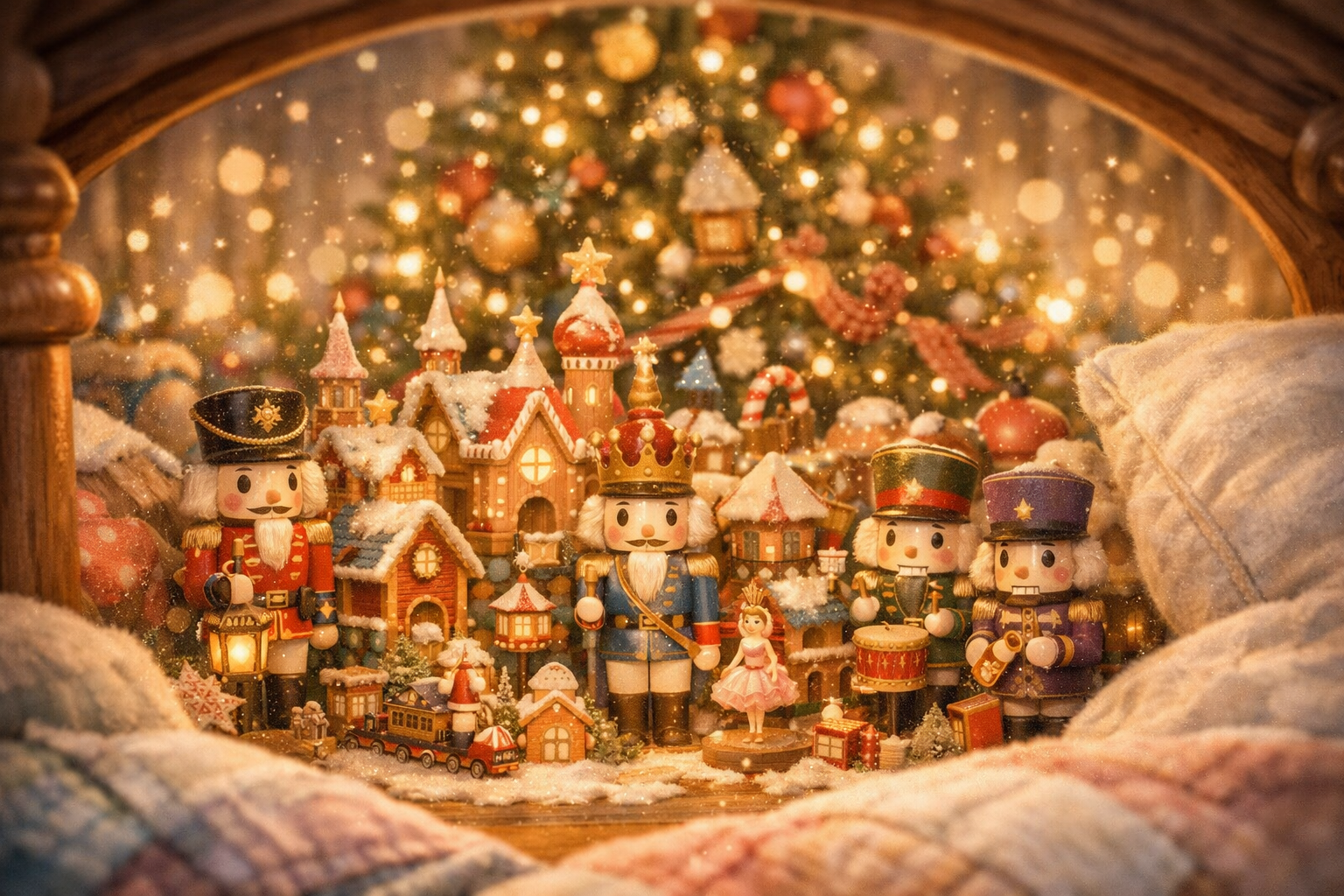 orchestral christmas ballet with dreamy waltz melodies, nutcracker-inspired strings and bells, whimsical and festive vocals, light percussion for a magical holiday feel