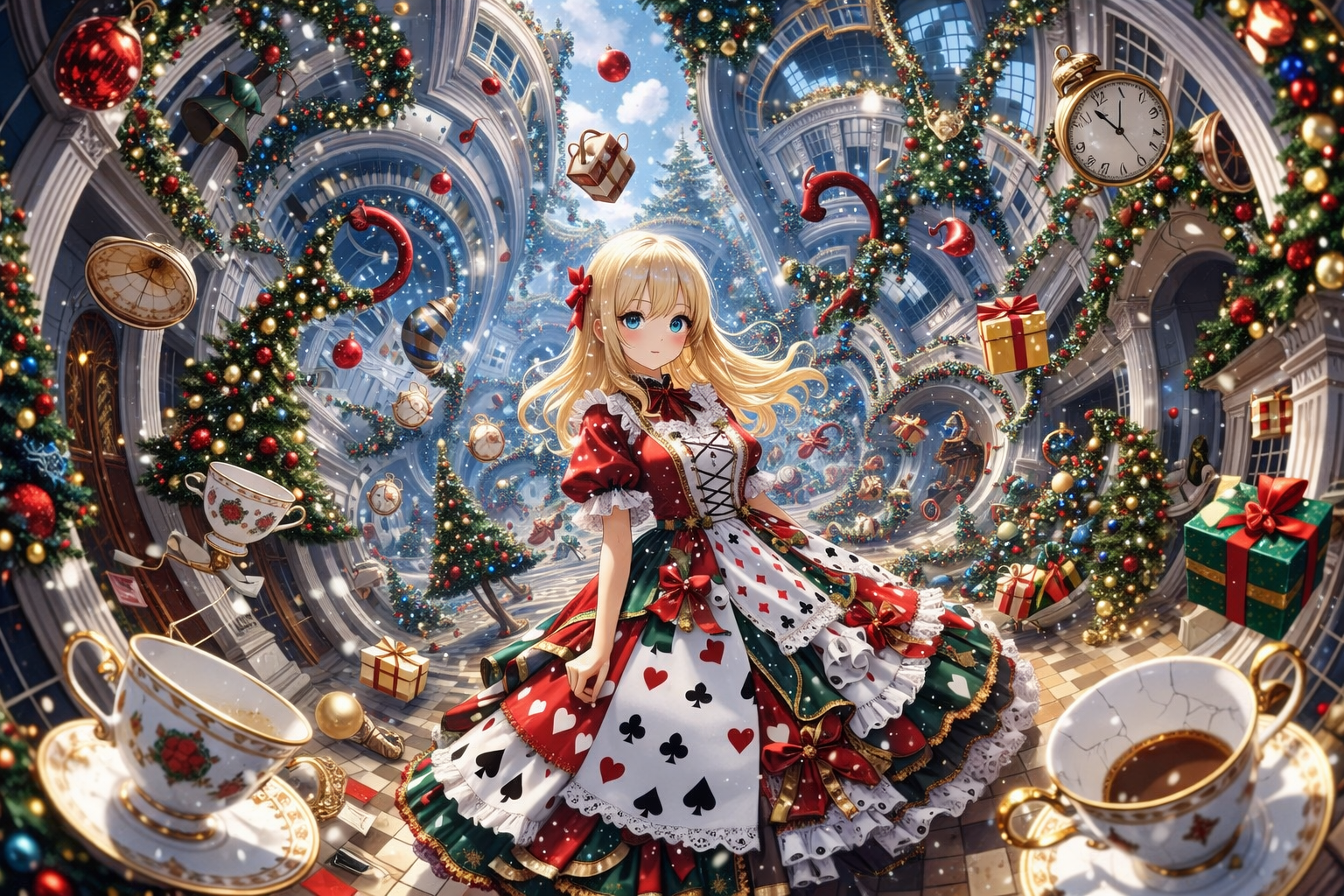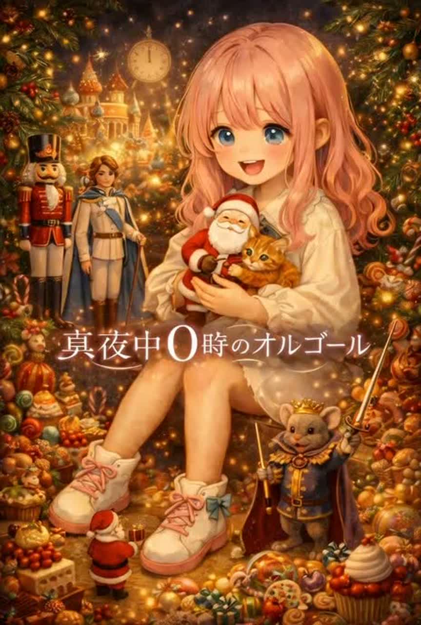 Fairy tale pop, cute whimsical anime pop, light orchestral, music box intro, bell sounds, soft female vocal, playful and mysterious, pastel Christmas atmosphere, bouncy rhythm, childlike wonder, sweet but slightly surreal