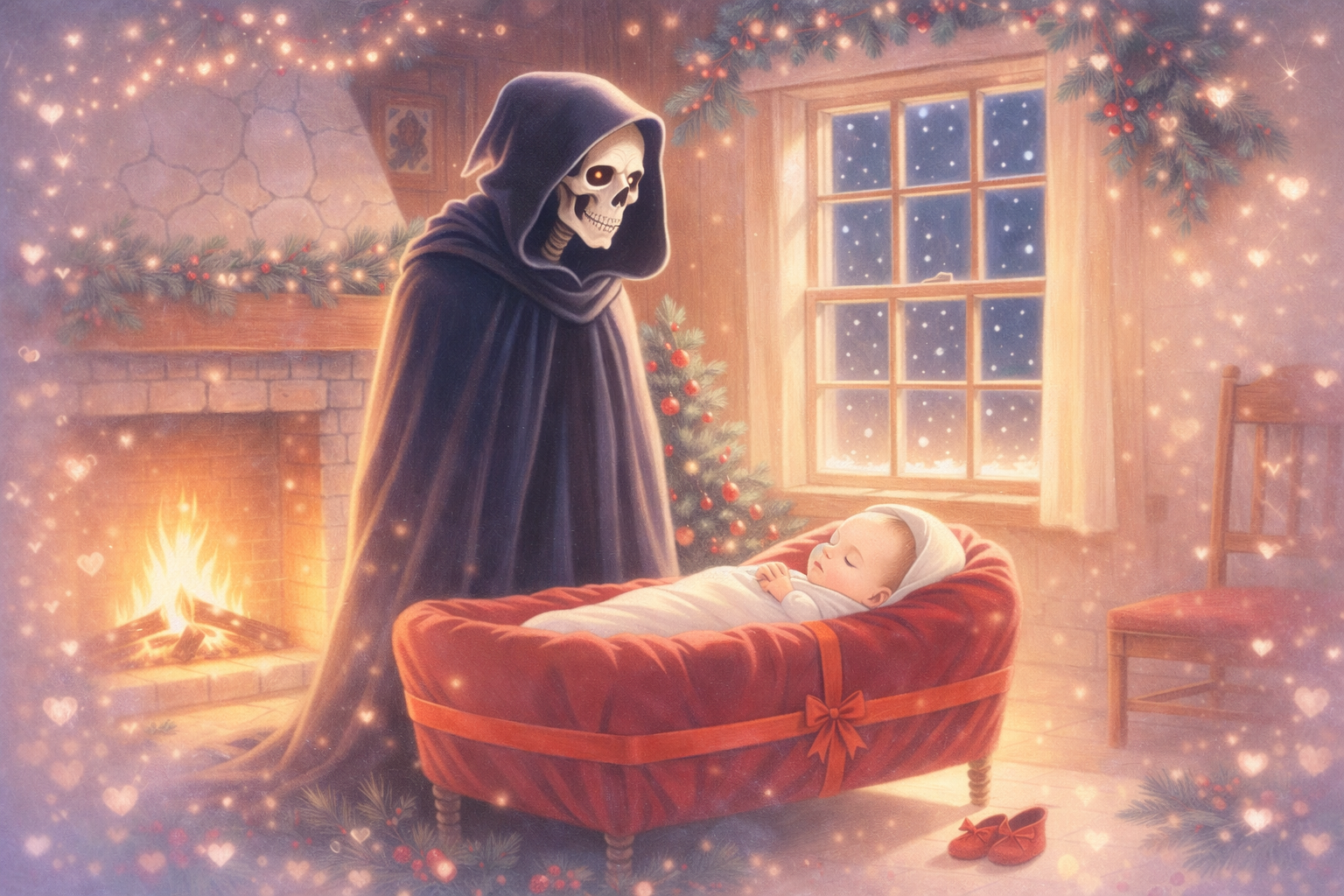 Gentle fairy tale pop ballad, music box and soft piano, warm choral backing, innocent and magical, childlike storytelling tone, sweet winter night atmosphere, tender and comforting, pastel sound palette