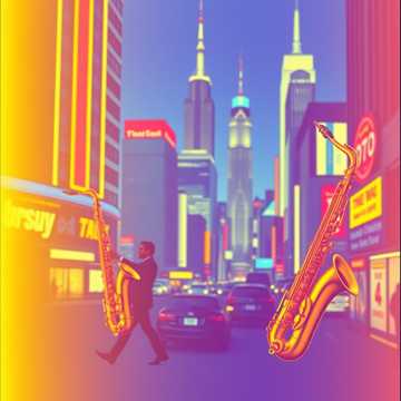 Comical and chaotic electro-jazz swing, with an abrupt stop, Followed by the sound of saxophone and rumba motor, A slap synth bassline