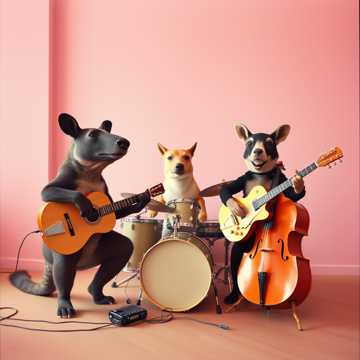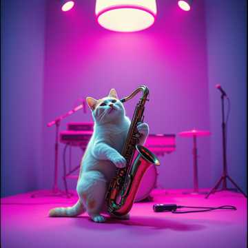 Comical and chaotic electro-jazz swing, The intro begins with a lo-fi beat sampling a cat's meow, followed by the sound of a rumba motor and electronic noises, The bass line bounces with a slap-like synth