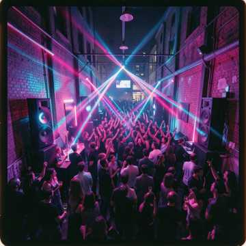 Upbeat cumbia with guira and tambora driving a tight clave groove at 98 BPM, layered with bright synthesizers, Moog-style monosynth leads, and accordion lines doubled by analog pads, Electric bass locks the tumbao, while drum machine kicks add deep 808 punch and organ stabs hit the offbeats with spring reverb, anime