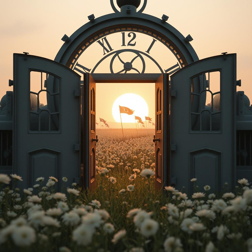 [instrument: 1980s-style analog synthesizers, pulsing bassline, subtle drum machine with restrained reverb, repetitive electric guitar riff that gradually expands into complex layered textures]