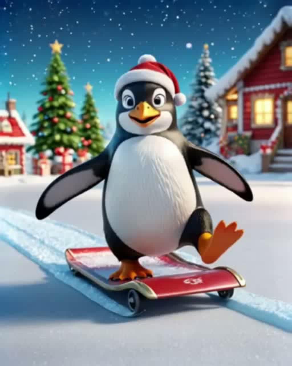Fun children’s Christian Christmas anthem about Topper the Penguin from “Santa Claus Is Comin’ to Town, ” Upbeat, joyful, bouncy energy with cute penguin noises (waddle-waddle, squawk, flap-flap, happy chirps), Cheerful male and female vocals with child-friendly tone, group chants, call-and-response, and a small children’s choir for the chorus, Bright instrumentation with jingle bells, toy piano, handclaps, sleigh bells, tambourine, light drums, glockenspiel, and warm choir pads, Storytelling style: Topper helping Kris, bringing kindness and Christmas joy with Christian themes of love, giving, and shining your light, Christmas pageant energy, Simple verses and big sing-along chorus, Upbeat 120–135 bpm, Joyful ending