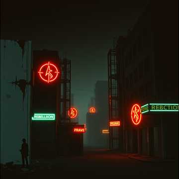 "Explosive hip-hop anthem with trap, classic rock, and punk fusion, set in a gritty urban battleground, Male vocalist: razor-sharp, rapid-fire rap with a nasal edge, shifting to anthemic semi-sung hooks, Vocal FX: moderate reverb for arena presence, light autotune on hooks, subtle distortion, layered ad-libs, crowd chants, echo accents, Sound FX: seismic bass drops, risers, gunshots, vinyl crackle, crowd roars, Instruments: crushing 808 bass, snappy trap hi-hats, distorted guitar riffs, cinematic synths, Tempo: 88 BPM, D minor for dark defiance, Structure: [Intro - Riser Build], [Verse 1 - Rap], [Chorus - Melodic, Crowd Chants], [Verse 2 - Rap with Gunshots], [Bridge - Bass Drop with Guitar], [Chorus - Melodic], [Outro - Vinyl Crackle Fade], Lyrics: provocative, truth-driven, exposing hypocrisy with raw, rebellious imagery, Hard beat switches