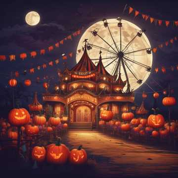 creepy, circus waltz, dark carnival organ, toy instruments, eerie strings, unsettling laughter