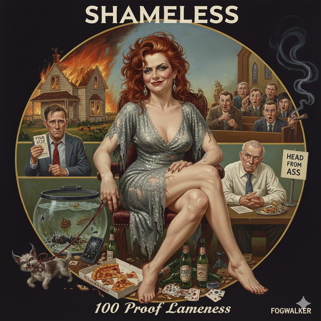 Overall: rowdy, Spaghetti Western, gritty raw outlaw-country talking blues characterized by its gravelly deep baritone vocals delivered in a speech-like, humorous and charismatic story telling style, the guitar delivers a boom chicka boom rhythm guitar, beat provides a rhythmic backbone, evoking the sound of spurs rattling in an old Western saloon, There is a mood of humor, grit and raw emotion with a driving train like momentum, production: has a rowdy live feeling rowdy prisoner audience reaction including laughter and cheers conveying a mood that is a mix of humor, grit and raw emotion