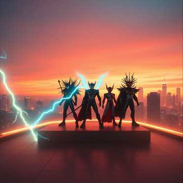 Japanese rock, anime theme, high-energy, Cinematic, Japanese Super Sentai opening, upbeat rock, heroic, energetic male vocal, fast tempo, strong guitar riffs, brass accents, chant-style chorus, brave and fun