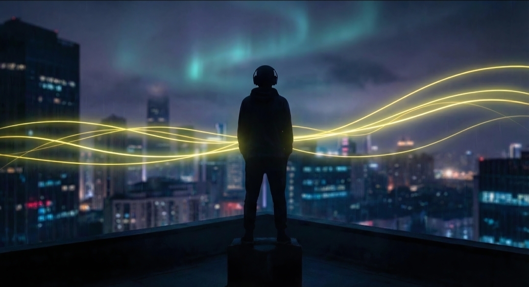 High-BPM, driving, classic 90s Techno-Trance track, Relentless, hypnotic bassline and sharp synthesizer arpeggios for focused work, Male vocals are clean and slightly robotic, except for the opening line which must use a low-frequency, heavily modulated, deep robotic voice effect, Use a dramatic, system-startup sound before the main beat drops