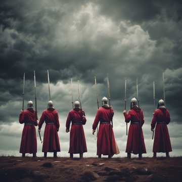 Cinematic World/Tribal Percussion | Style: Viking Metal Influenced, Epic Battle Chant, War Drums, Orchestral, Deep Male Vocals, Beat: Massive, heavy hand percussion (taikos, war drums), aggressive tribal rhythm, and relentless pounding, Instrumentation: Deep, echoing male choir (chanting), soaring cinematic strings, powerful brass hits (horns), and low, rumbling bass frequencies, Vocals: Fierce, shouted delivery with deep, rhythmic chanting backup, Production: Wide stereo field, huge reverb, designed to sound like an enormous army marching into battle